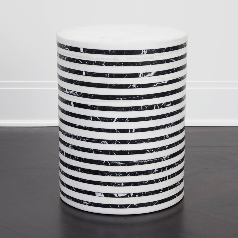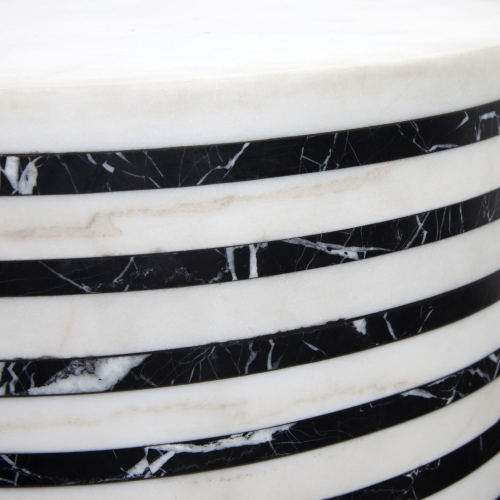 Lineage凳子融合了混合大理石和建筑构造形式,体现了艺术与功能的现代二元性。 这款雕塑般的整体式凳子采用交替层叠的天然黑色玛奎那和白色大理石,经过磨光处理。