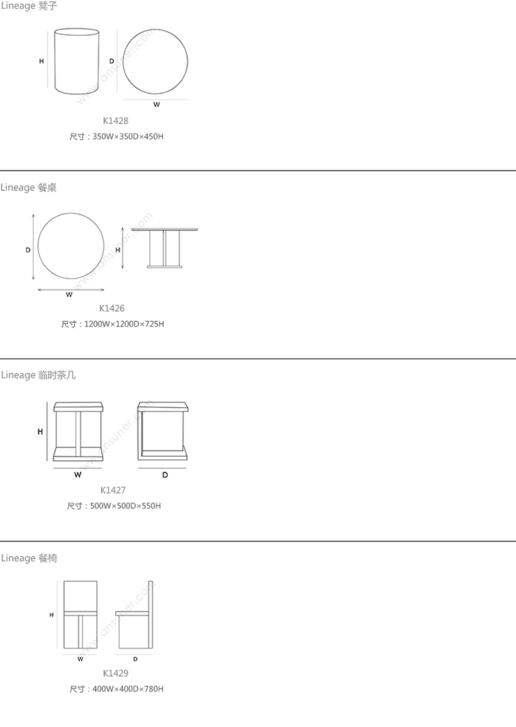 Lineage 凳子 系列尺寸/示意图