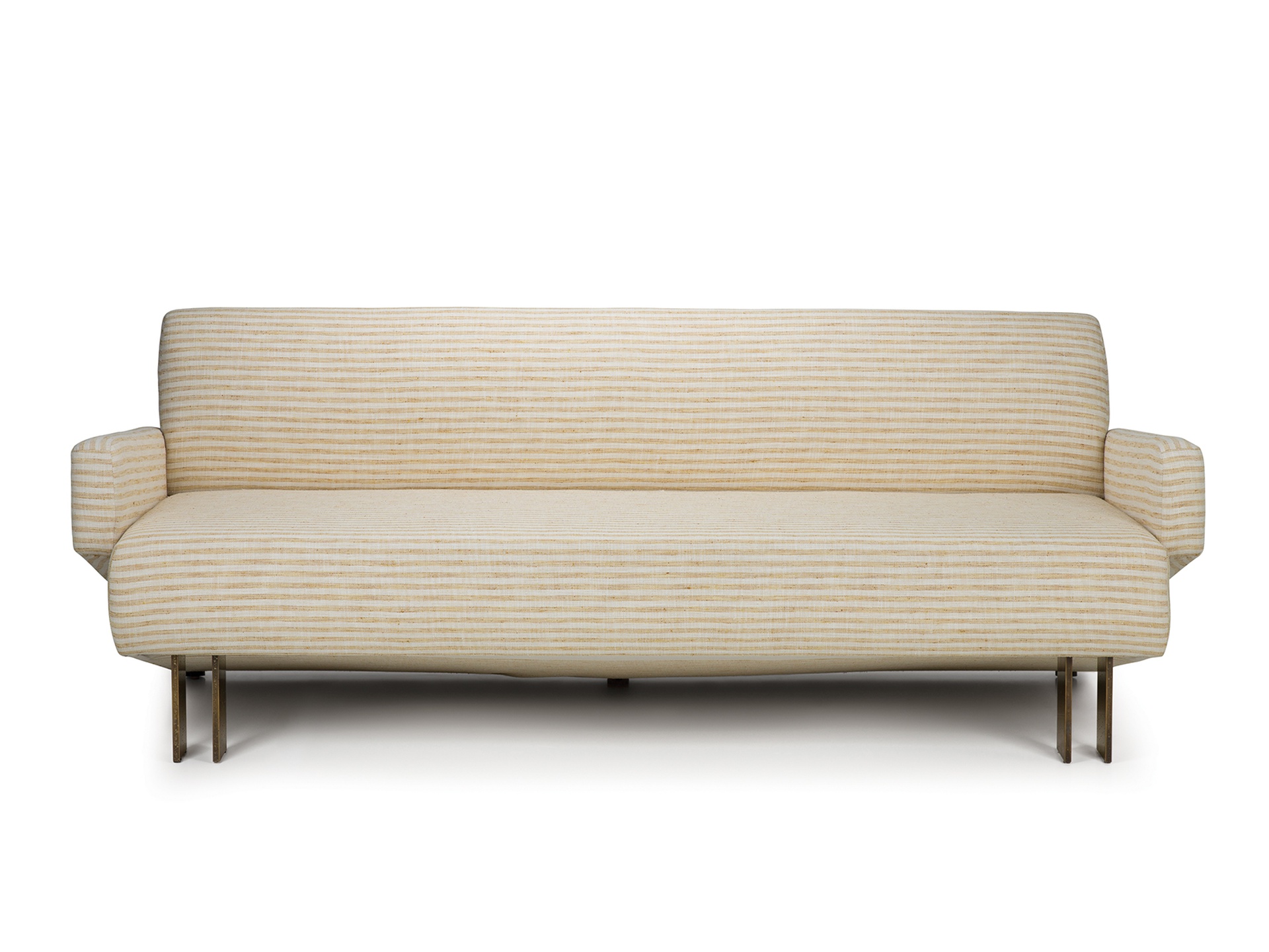 Zephyr Sofa拥有独特的现代和雕塑风格。 26英寸深的座椅深度,结合低腰背和锥形扶手,使这款球杆椅非常适合正式和休闲座椅。 铸造黄铜腿展现出手工锤击纹理,赋予建筑细节。 硬木框架采用双向榫钉,配有8向手动弹簧,可延长使用寿命和性能。