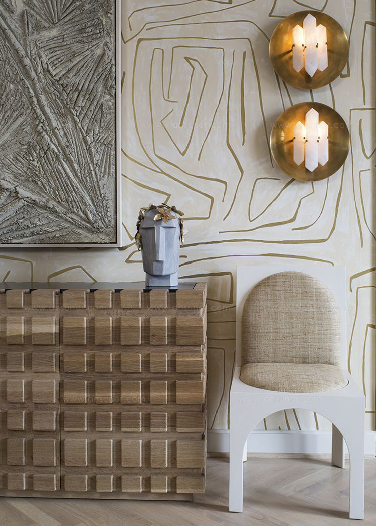 灵感来自Kelly对建筑和雕塑形式的热爱,这款独特的餐椅采用罗马式拱形腿,手工涂抹石膏。 紧凑的软垫座垫和靠背由Kelly手工挑选的一系列面料和皮革提供。