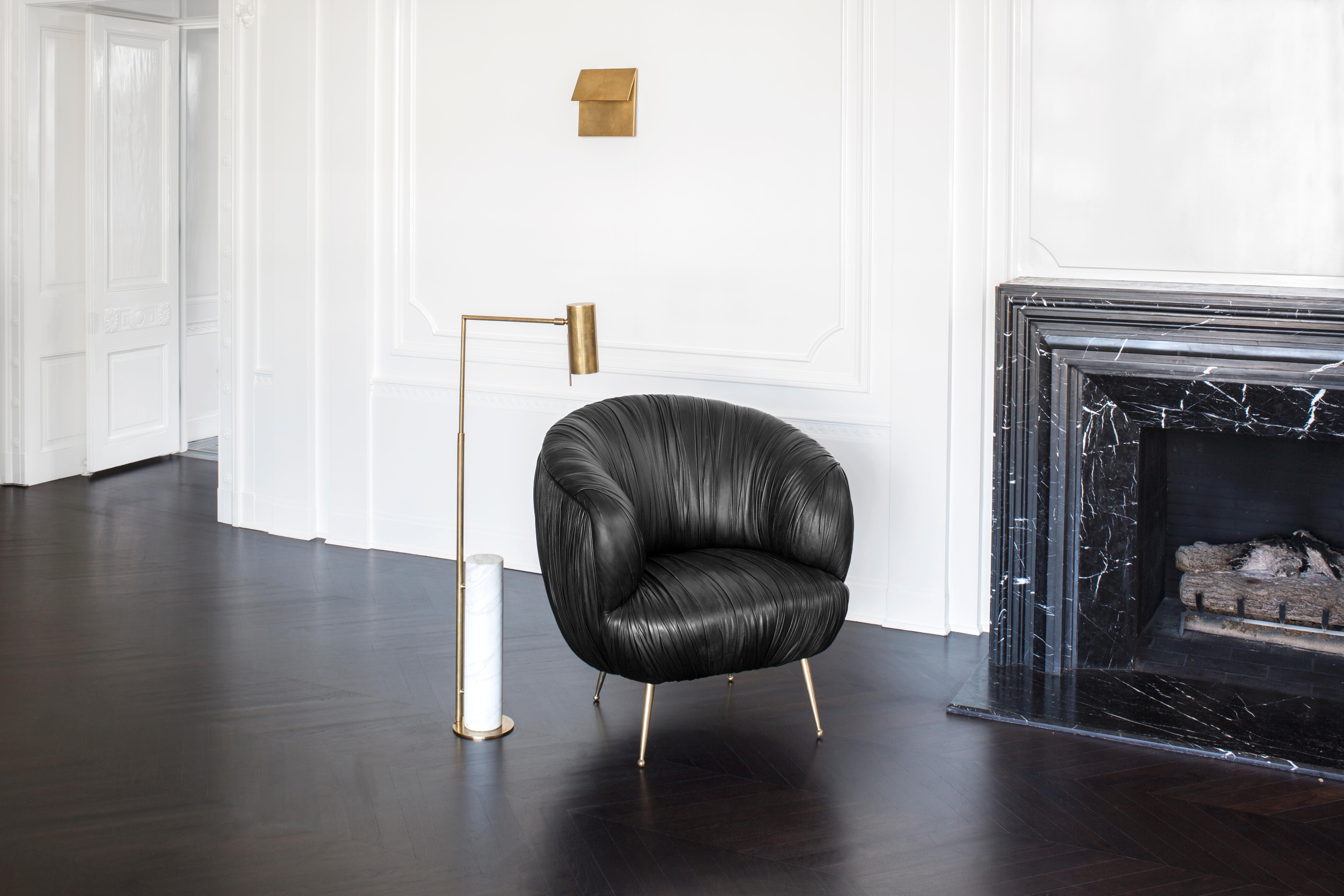 这款极简主义药房落地灯采用古董抛光黄铜或抛光镍制成,功能齐全,美观大方。 可调节臂上的管状遮阳板悬挂在圆柱形大理石底座上方。 灯旋转40度; 中心左右两侧20度,因此您可以轻松地将它放在您的上方作为阅读灯。 要进一步瞄准灯泡,请使用遮阳板上的手柄,该手柄也可以上下旋转180度。 织物缠绕的线具有易于开/关的开关。