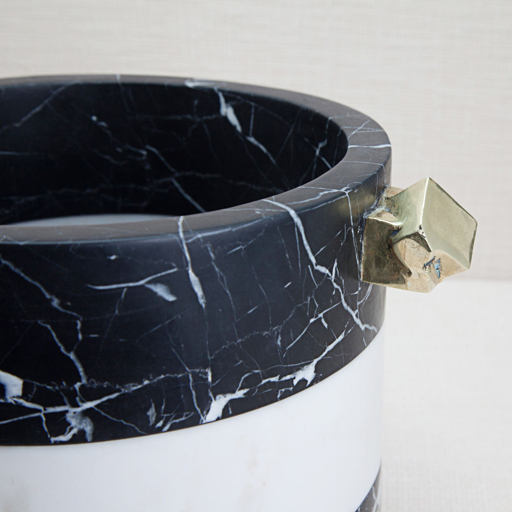 拥有令人惊叹的Acolyte冰桶,饰有天然青铜手柄,采用手工采摘的黄铁矿石制成。 Kelly对娱乐必需品的热爱激发了这款对比鲜明的黑色和白色冰桶,由黑色马奎纳和白色卡拉卡塔大理石手工雕刻而成。