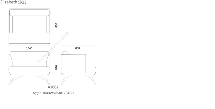 Elizabeth 沙发 系列尺寸/示意图
