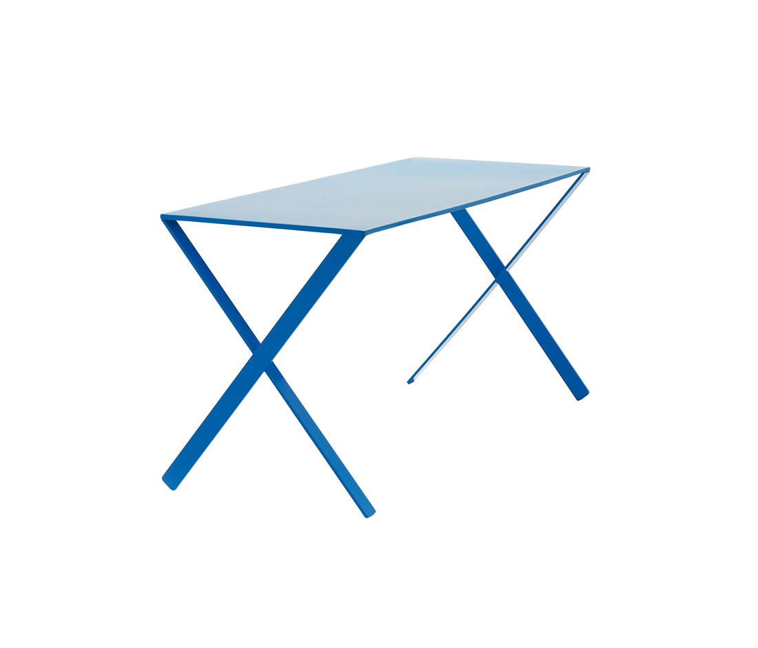 多功能桌子或办公桌。 顶部由折叠起来的激光切割铝板构成; 金属底座支撑,铝挤压腿。 桌子采用哑光漆,有白色,蓝色,红色,灰色和黑色可供选择。