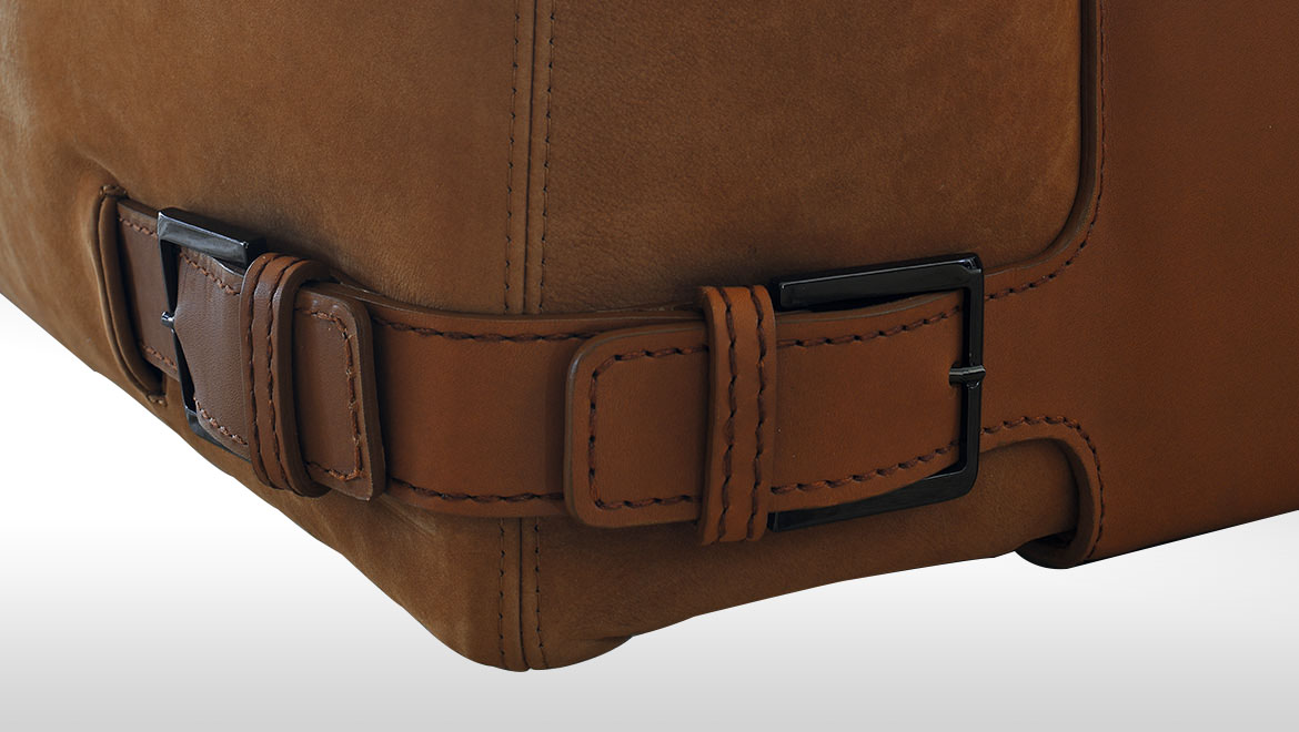 BACK Metal covered with natural hide, dark chocolate, black, lava, quartz grey