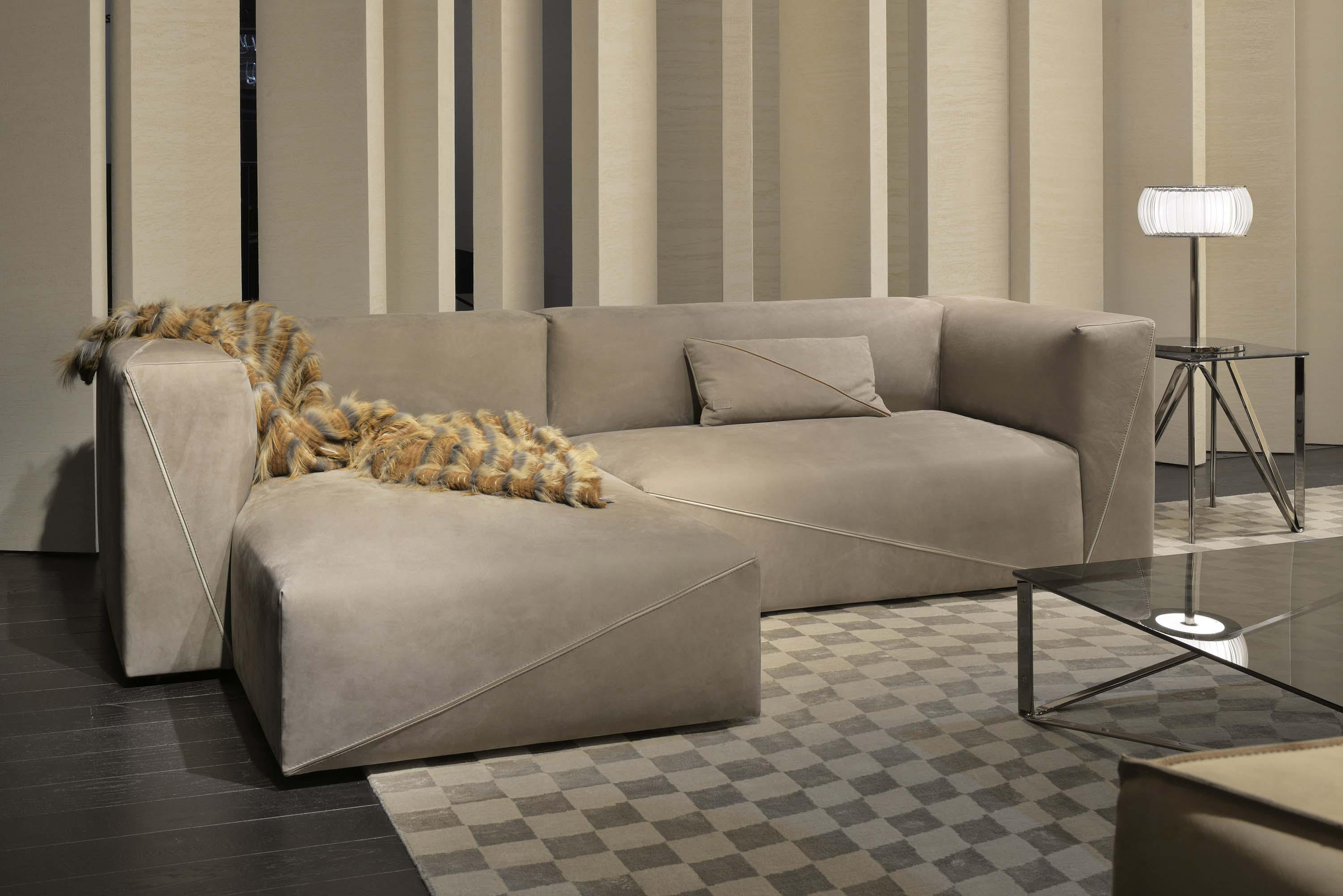 Diagonal is the new contemporary seating system comprised of compact elements that bring out its comfort. The stitches bestow a strong expressive character, thanks to the play of diagonal lines and colour pairings in the detailing. A tailor-made offering that come in multiple versions: thickened nabuk with raw-cut edges, in leather or inlaid fabric with tone-on-tone or contrasting inserts.