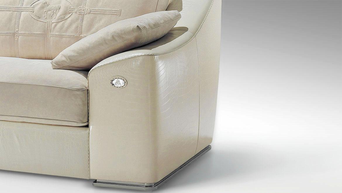 Frontal cover available also in fabric or printed leather (see price for component on the price list). Fabric or leather piping on armrests