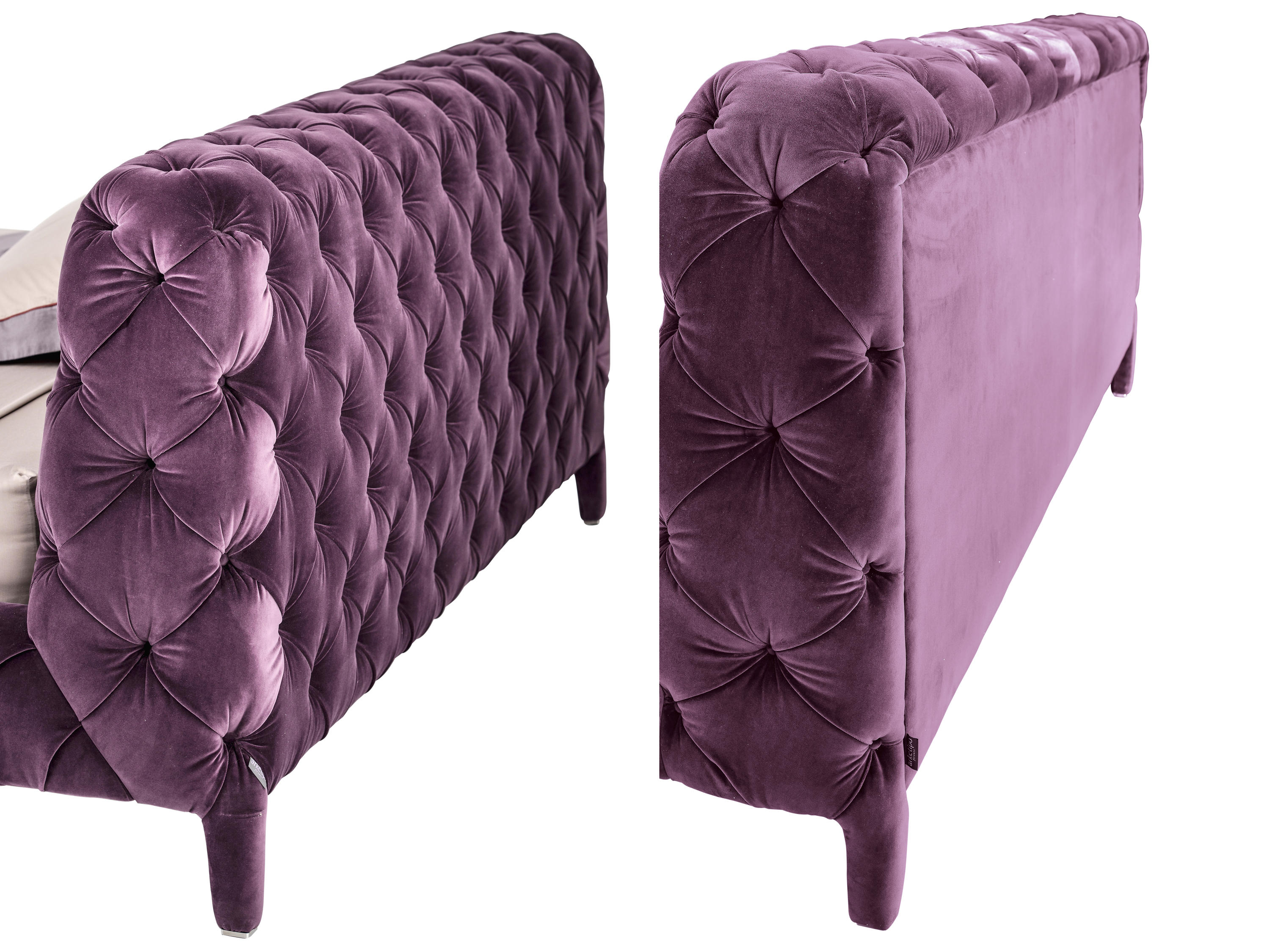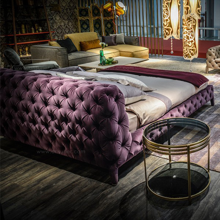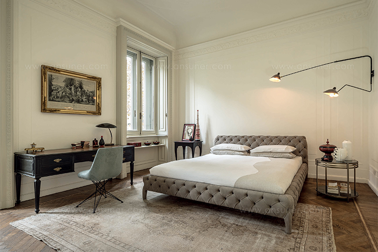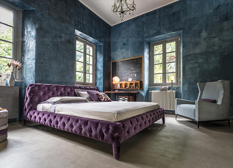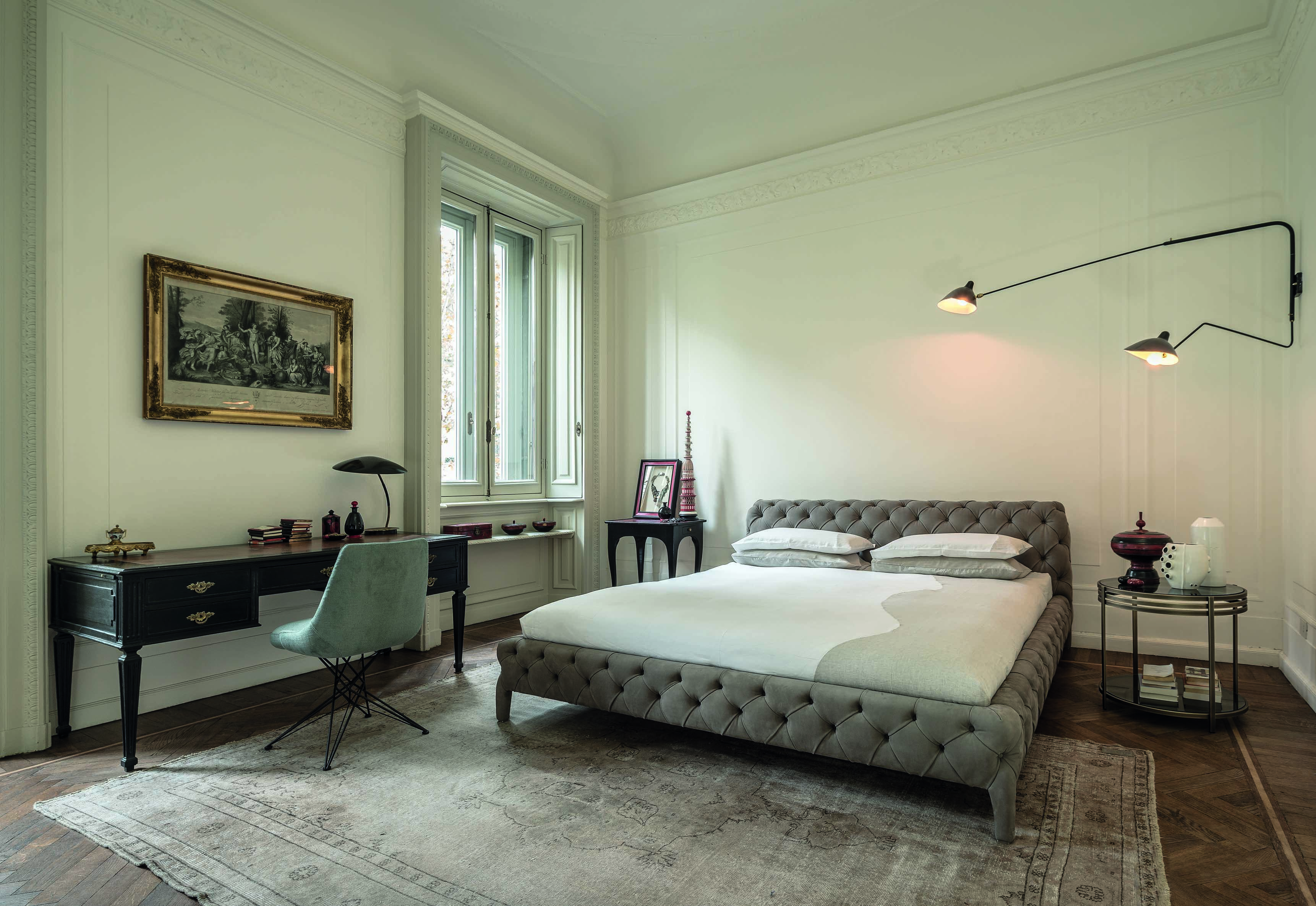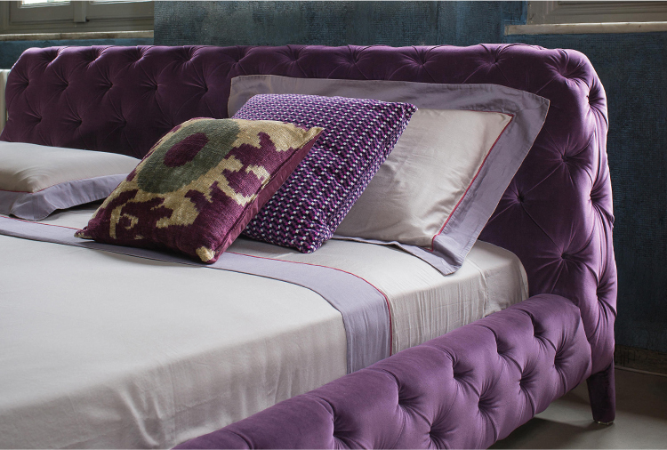 温莎梦幻床,设计中的杰作,保持了古典与现代风格之间的平衡,且保持着沙发的特色。 精致的材料,特别是手工制作的饰面和capitonnè室内装潢是追求严谨的英国优雅的象征。由典型的纽扣嵌入到形成菱形图案的室内装饰品中而形成的轻型图案覆盖整个结构,包括床头板。因此, 温莎梦幻床甚至可以放在房间的中心, 天鹅绒版本是纯粹的奢华而皮革版则是精致的富有。
