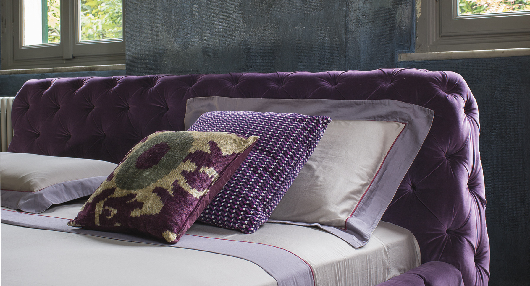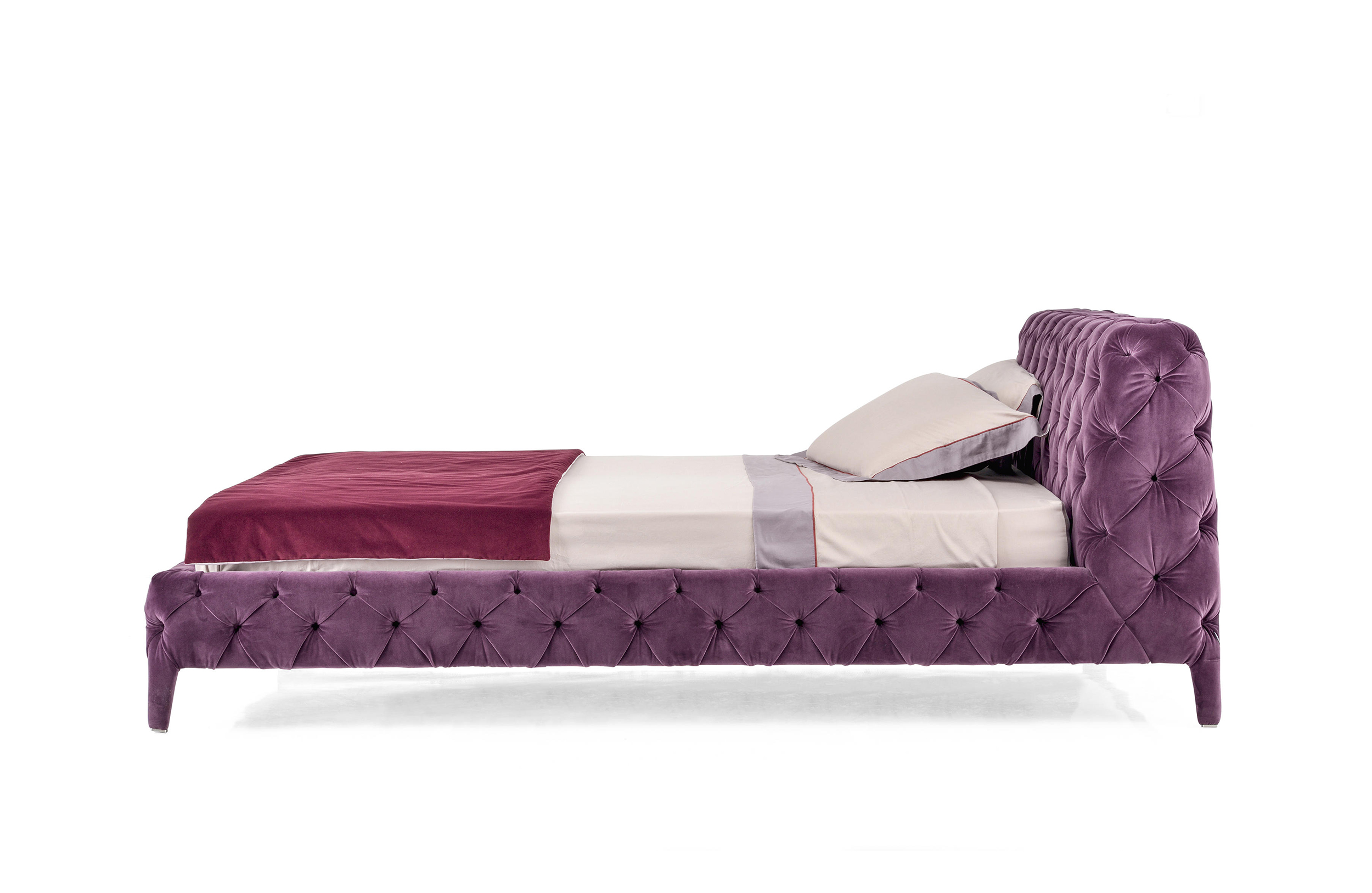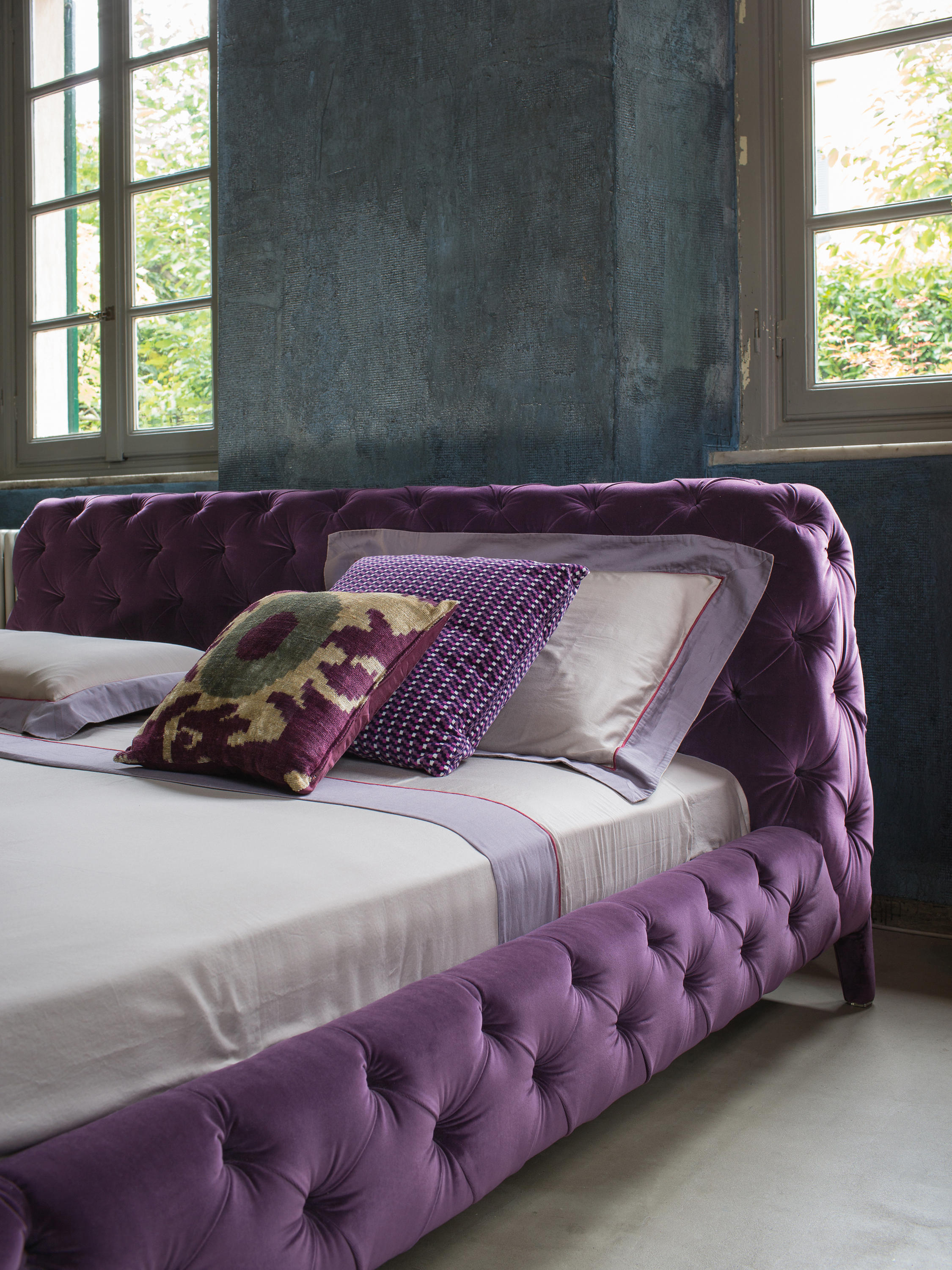 温莎梦幻床,设计中的杰作,保持了古典与现代风格之间的平衡,且保持着沙发的特色。 精致的材料,特别是手工制作的饰面和capitonnè室内装潢是追求严谨的英国优雅的象征。由典型的纽扣嵌入到形成菱形图案的室内装饰品中而形成的轻型图案覆盖整个结构,包括床头板。因此, 温莎梦幻床甚至可以放在房间的中心, 天鹅绒版本是纯粹的奢华而皮革版则是精致的富有。