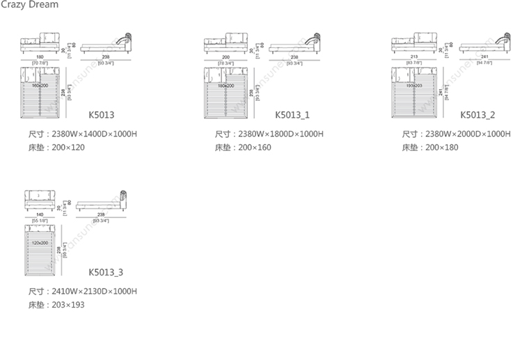 疯狂的梦幻床, 灵感来自于同一系列的沙发,它提供一个可调节的床头板,允许舒适和优雅的多功能性。
