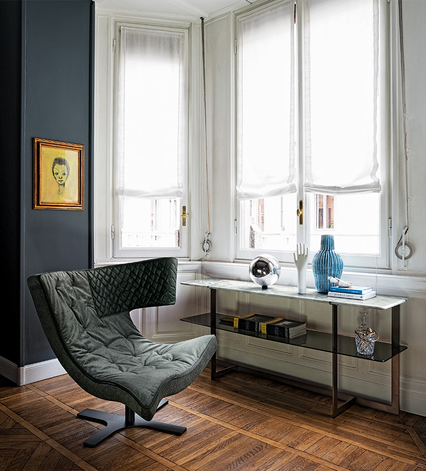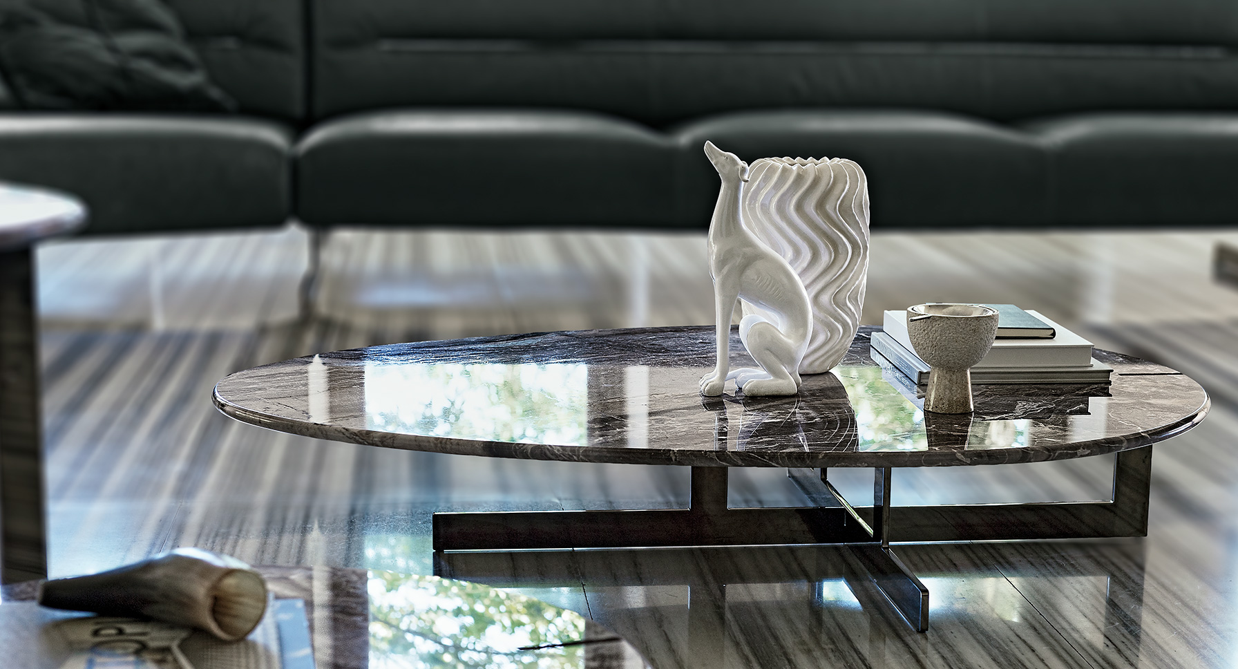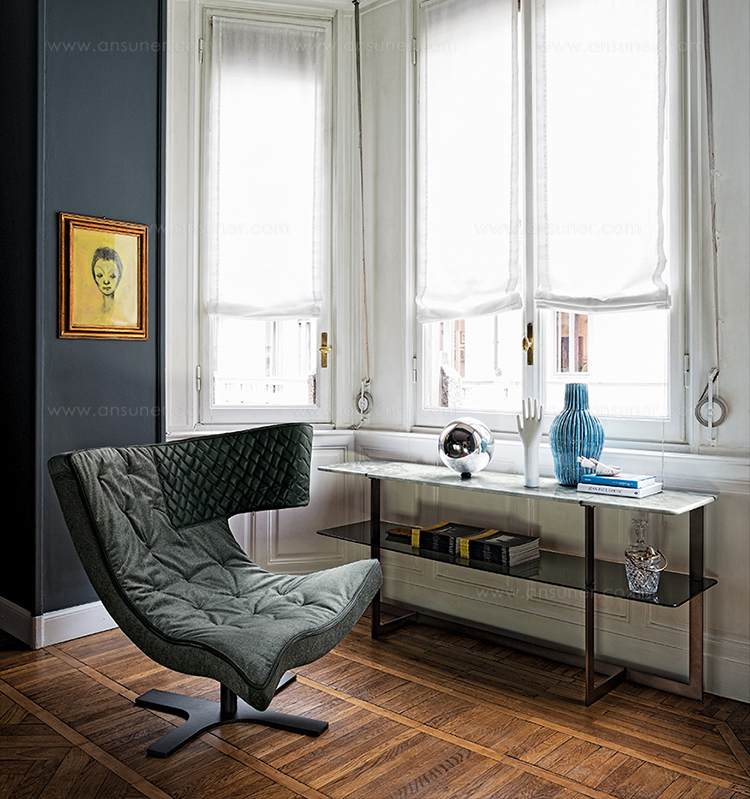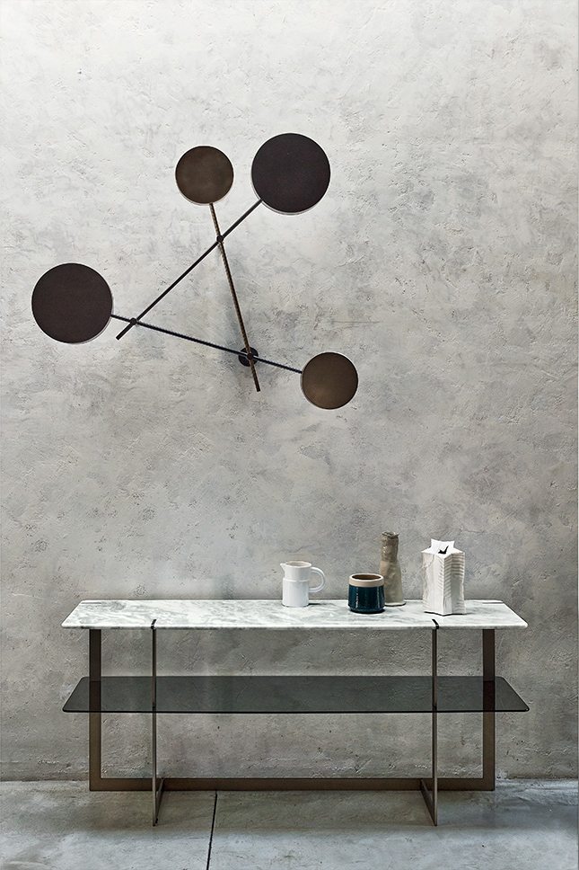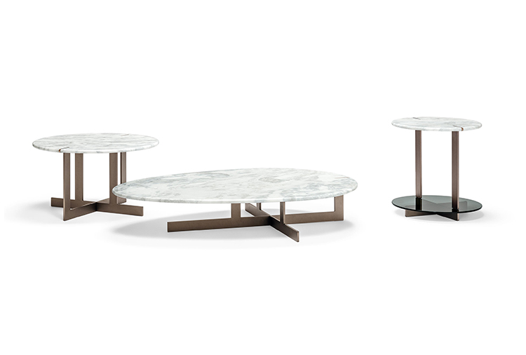 道格拉斯是一个由金属、大理石和玻璃组成的茶几系列。这些桌子可以围绕在沙发周围,因为它们可以放在前面、后面或侧面,可以用作茶几或边几。