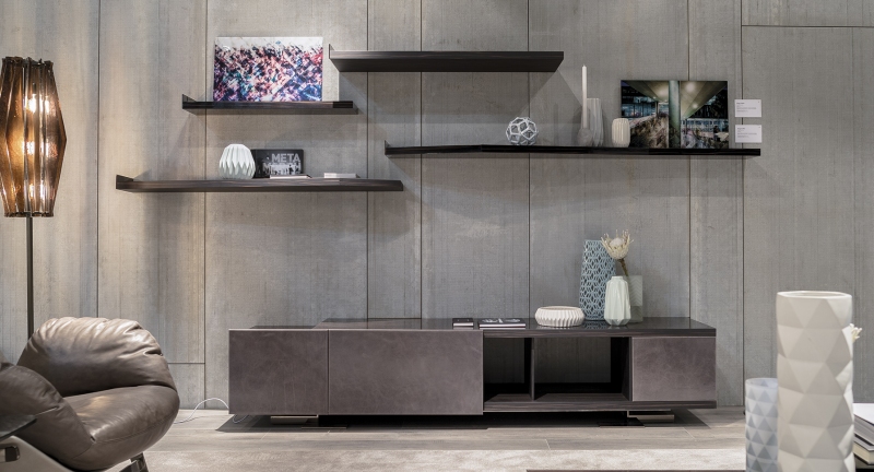 Endor餐具柜的特点是独立而精确的图形设计,就像一个荒岛。由于它的结构和开放的架子,它可以放置在墙壁或客厅。柜体由摩卡橡木、柚檀和乌木制成,柜门上面覆盖了列奥纳多的真皮。金属底座可以用云母棕或黑镍制成。