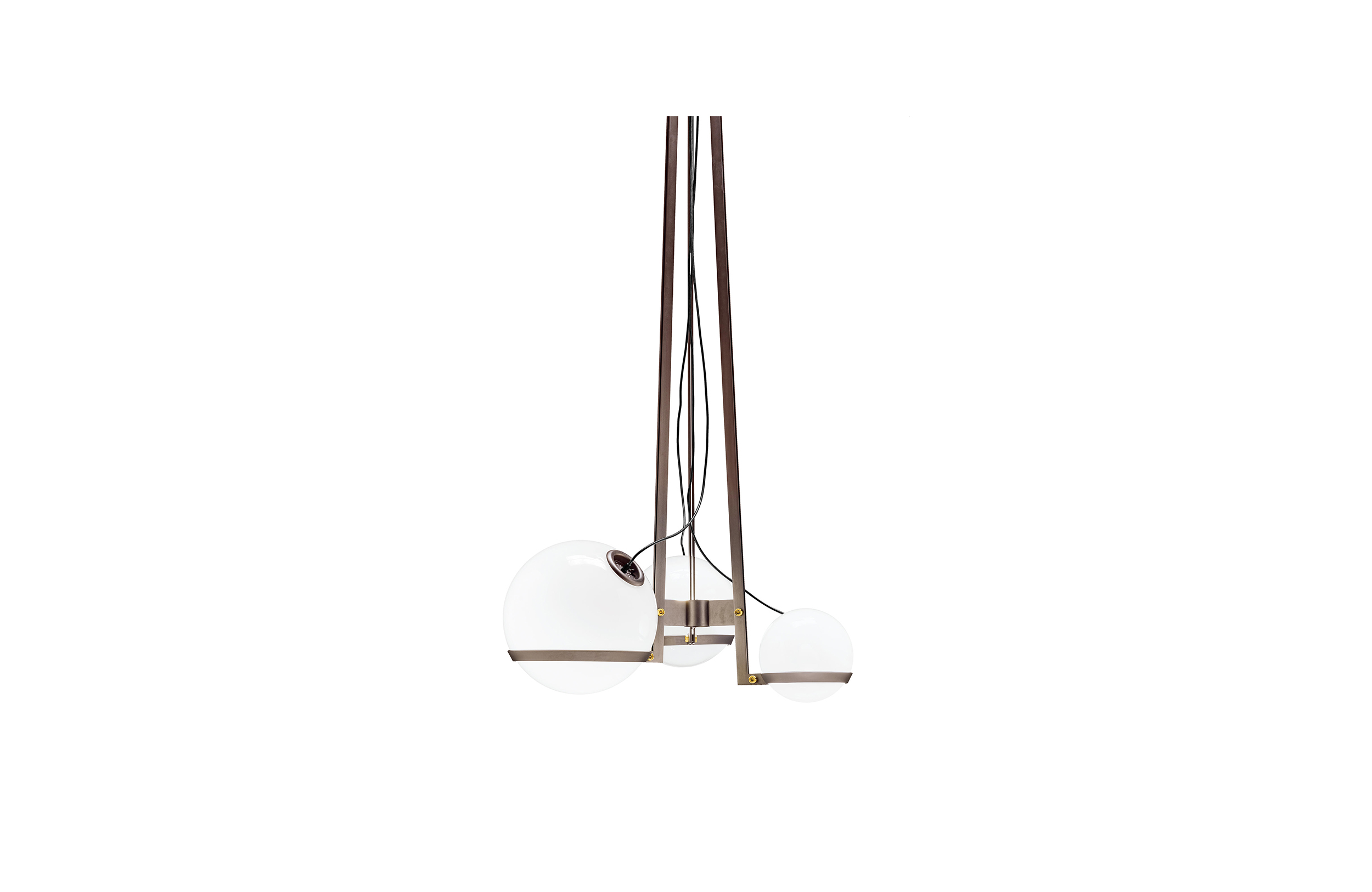 创意和吸引力是泡泡龙的特征。 泡泡龙可用作落地灯或悬吊灯,反映了泡泡龙的轻盈。其三个不同深浅和尺寸的玻璃球体由薄金属条带支撑。设计灵感来自同名游戏泡泡龙。