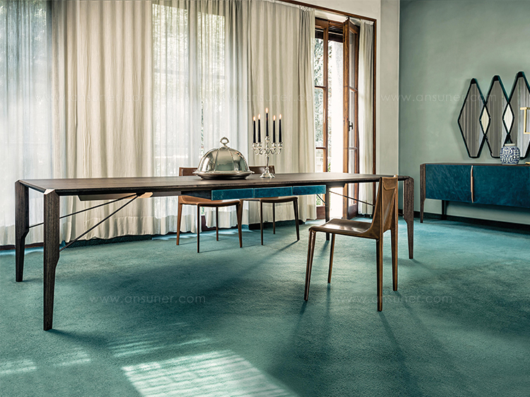 Gino Carollo设计的《名利场》(Vanity Fair)由镜子或烟熏玻璃制成。它以丝绒或皮革制成罩盖提供了一种严谨的精度和美感的效果,并与简单的菱形线形成对比。镜子可以是单、双、三、甚至是将模块并排放置在墙上。