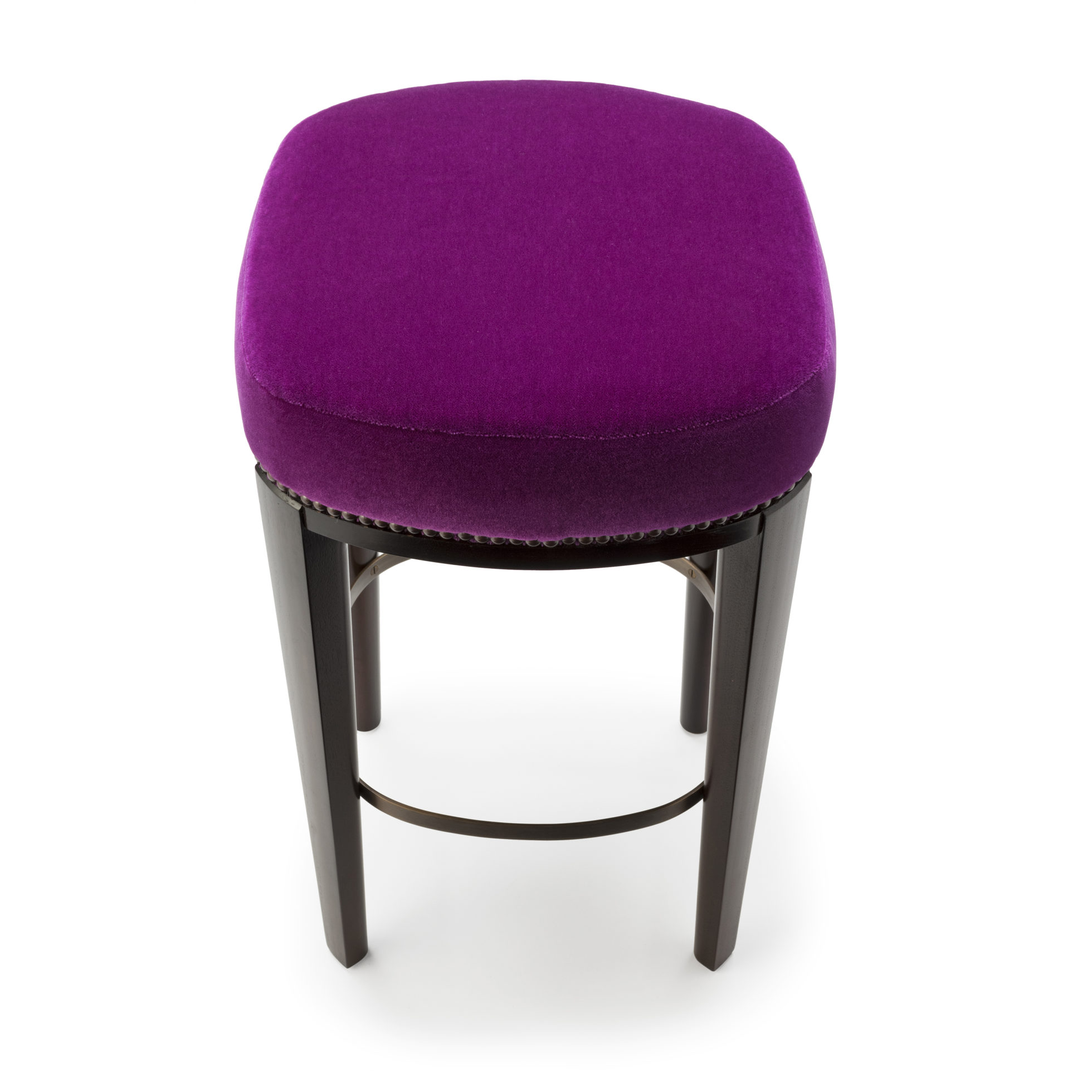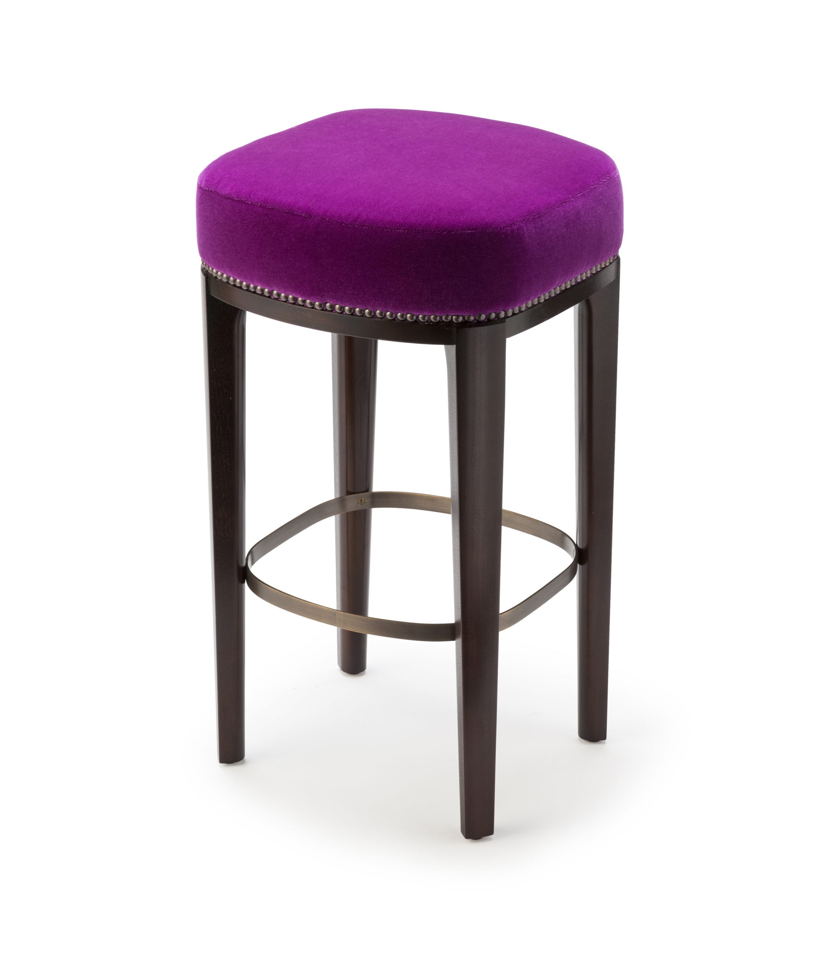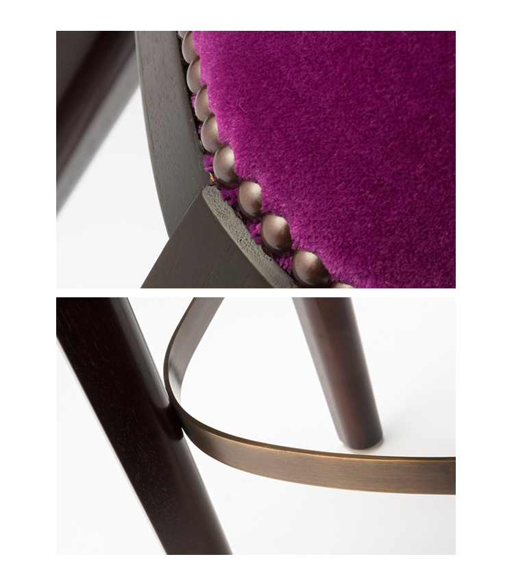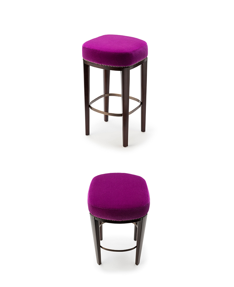 Babo是一个简单的、优雅的凳子都具有美国黑胡桃木、橡木雕刻手腿和一圈装饰钉在座位。