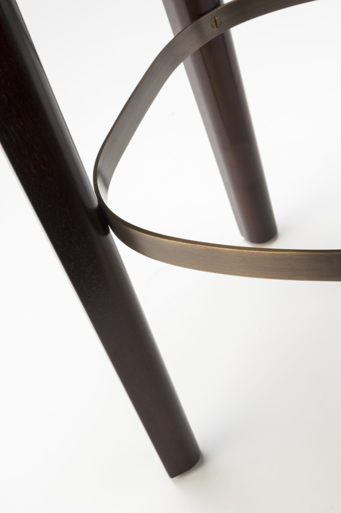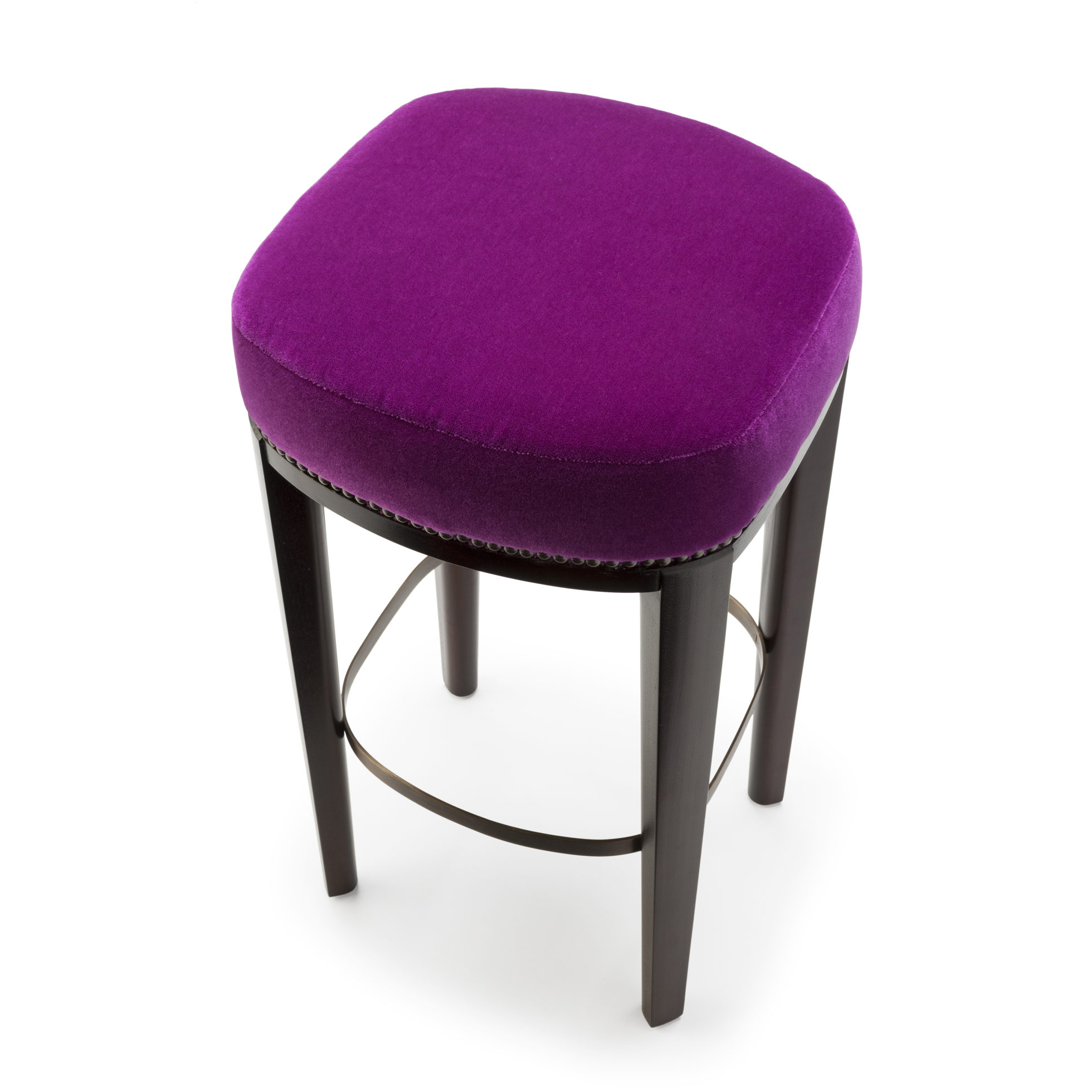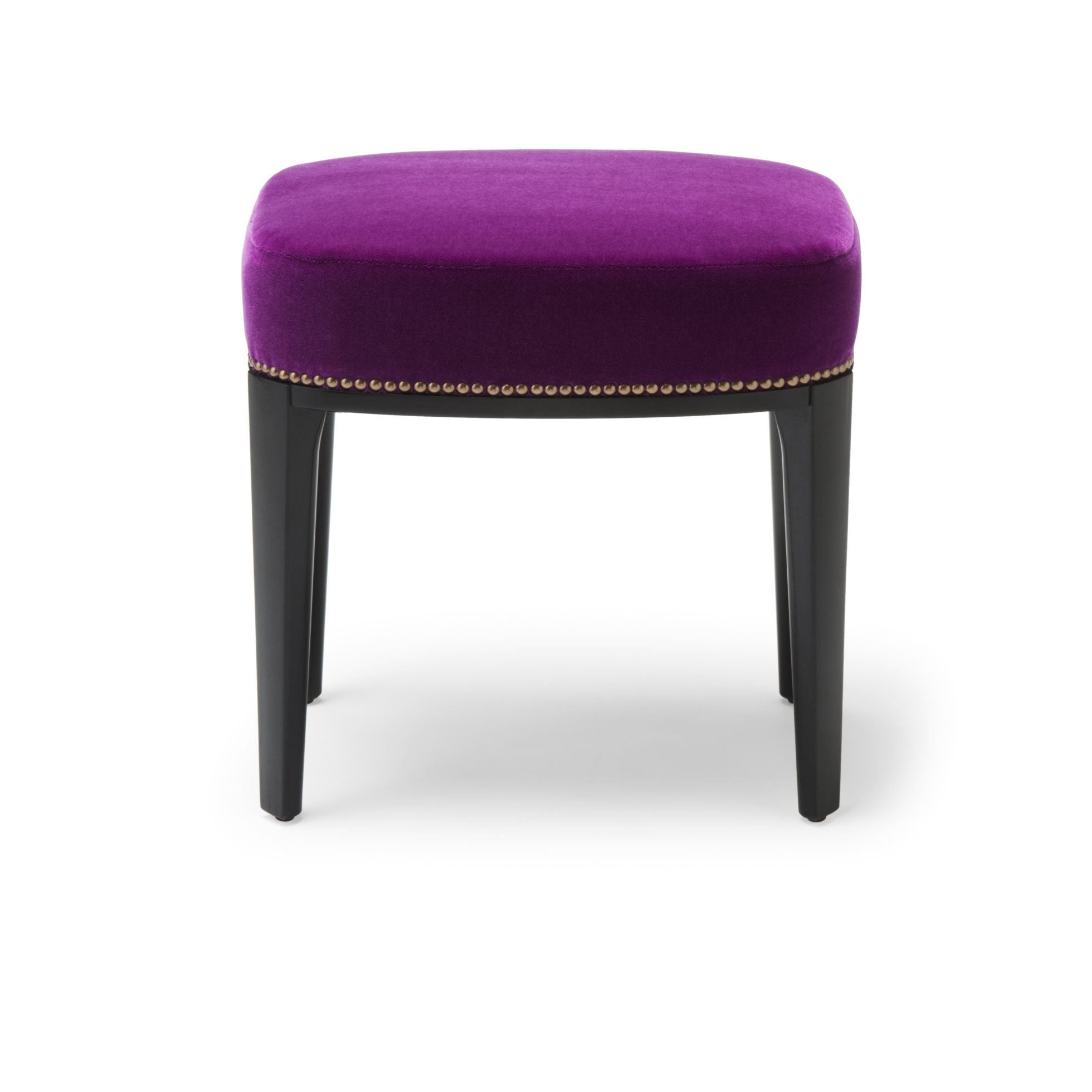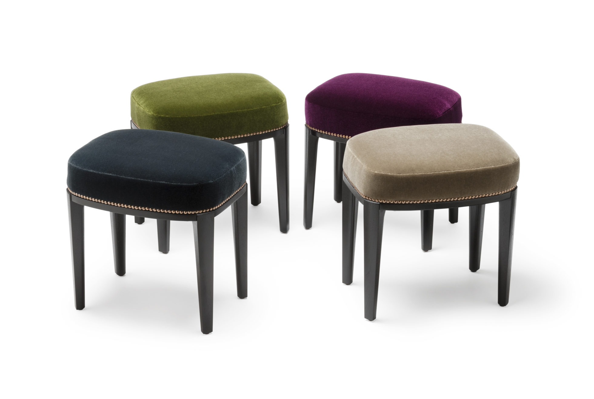 Babo是一个简单的、优雅的凳子都具有美国黑胡桃木、橡木雕刻手腿和一圈装饰钉在座位。