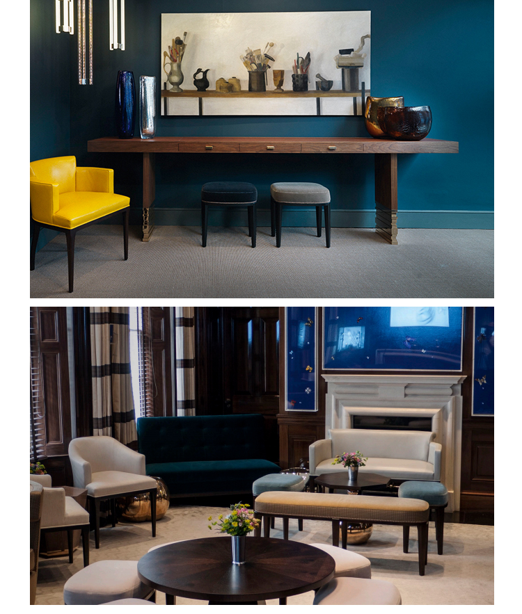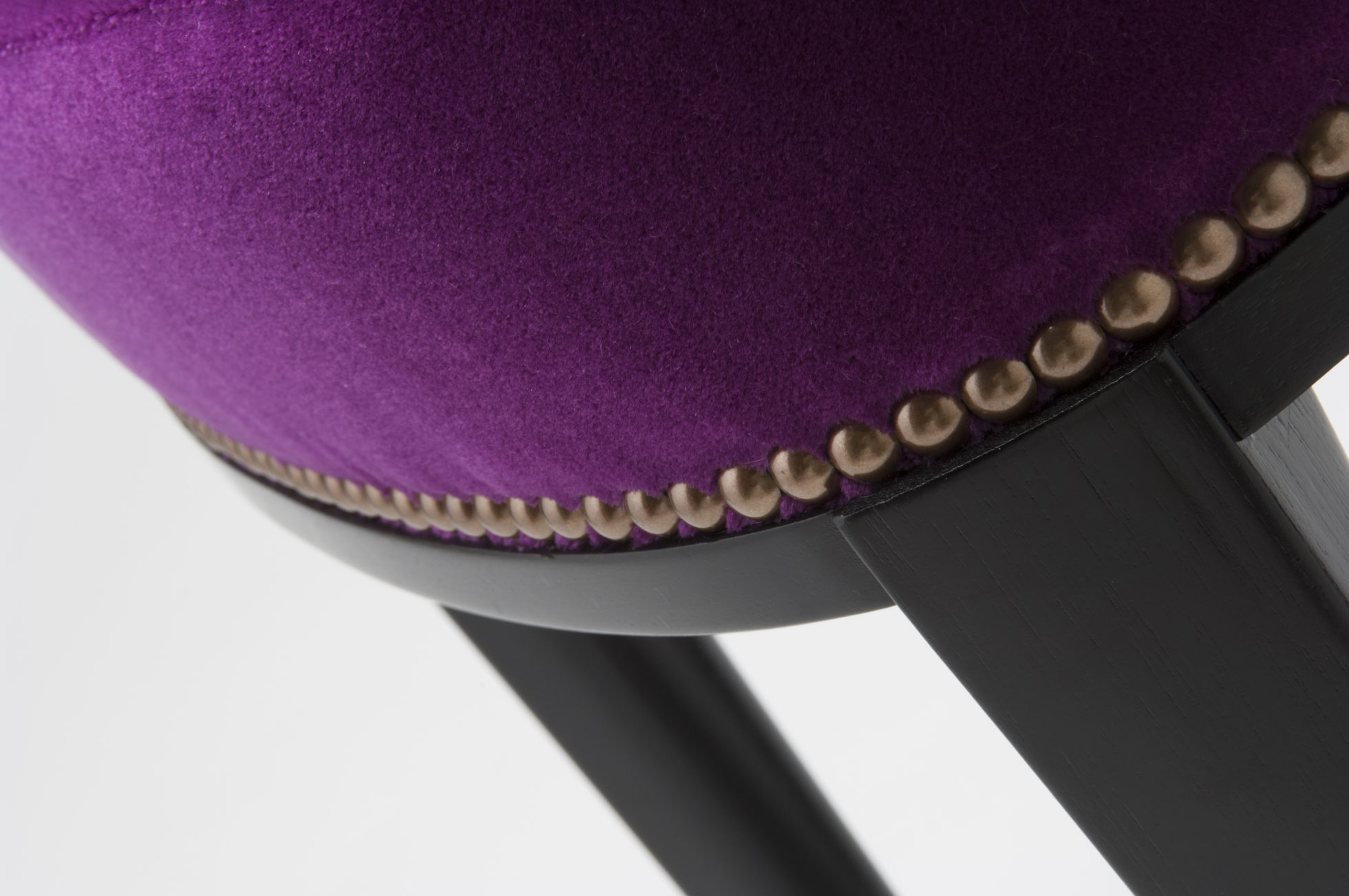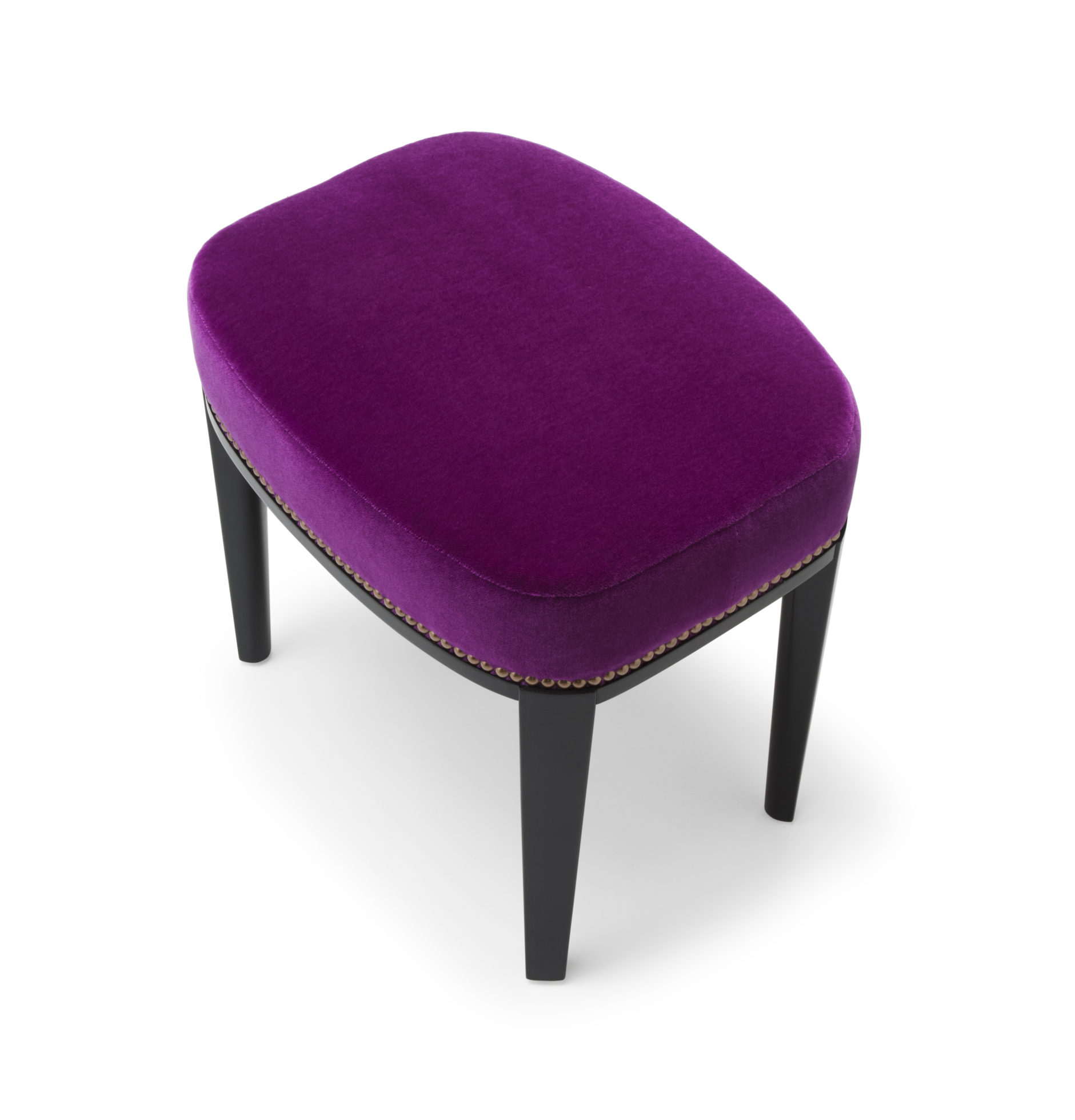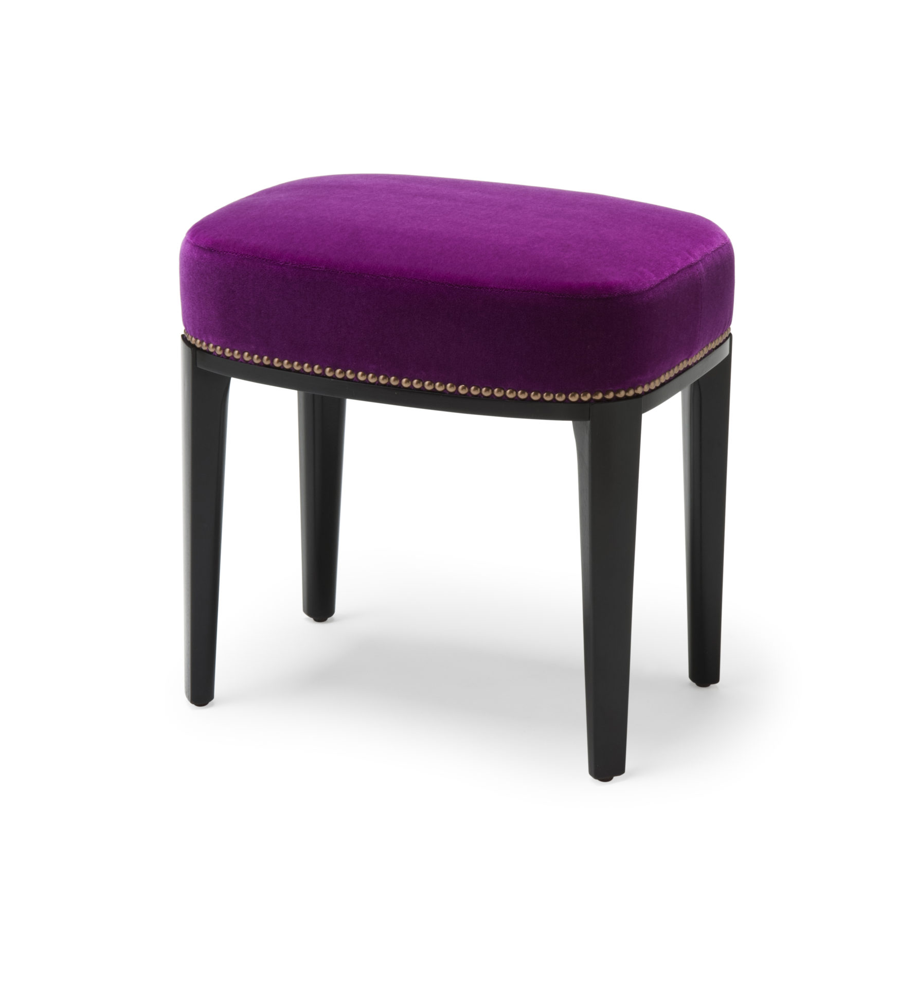 Babo是一个简单的、优雅的凳子都具有美国黑胡桃木、橡木雕刻手腿和一圈装饰钉在座位。