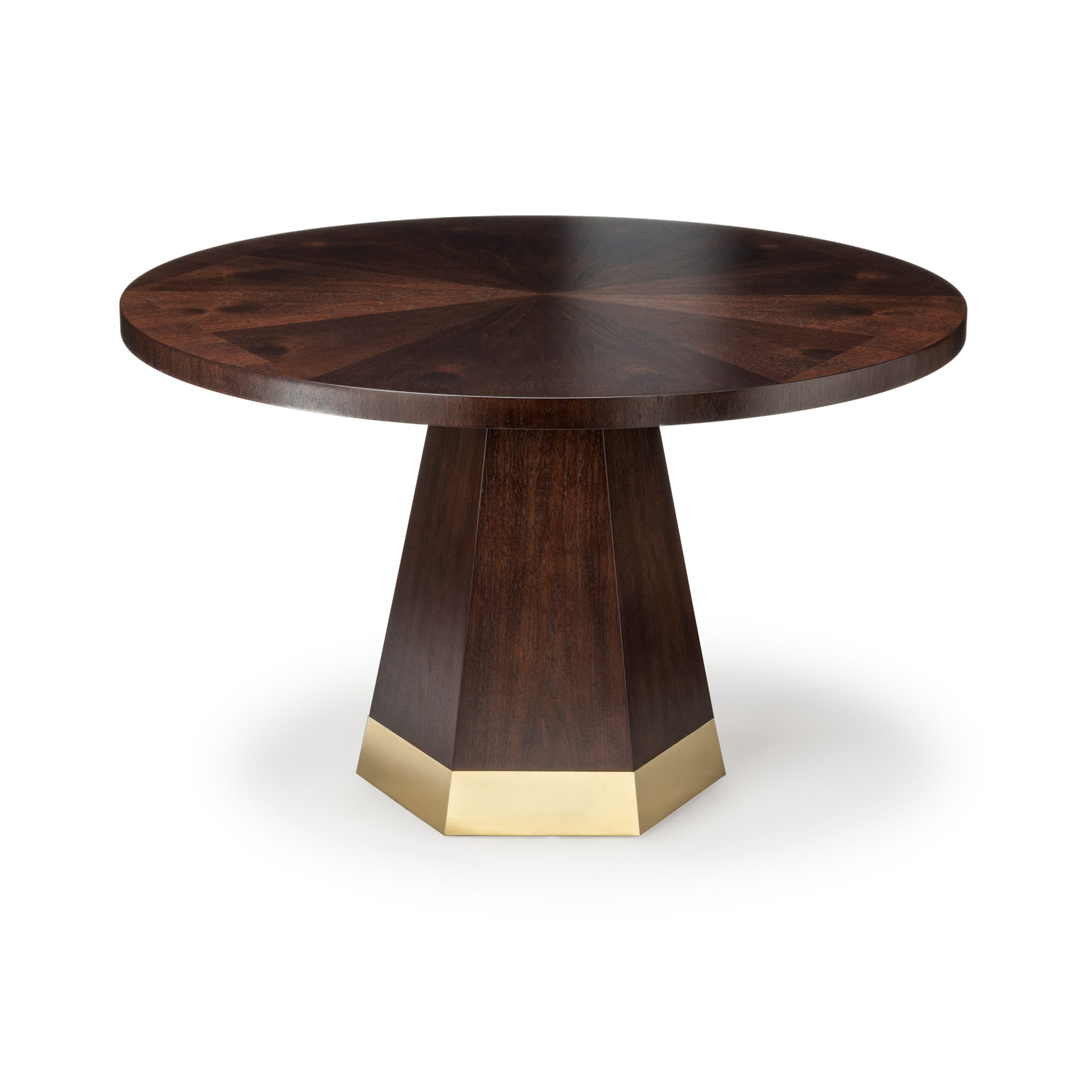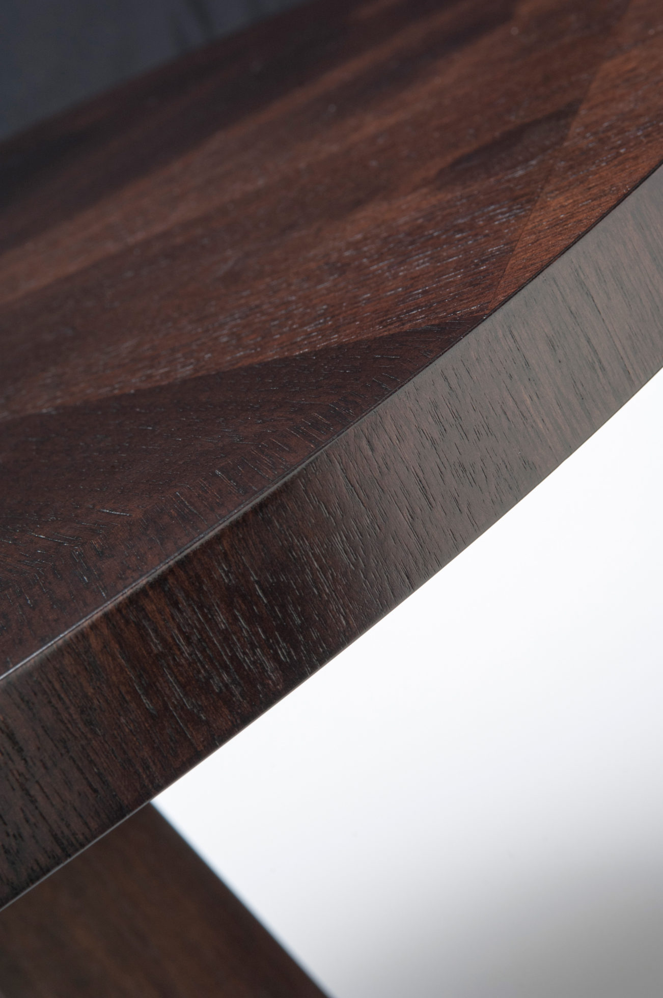 Equilibrium表显示在美国黑胡桃“巧克力乌木缎”中,带有拉丝黄铜底座。