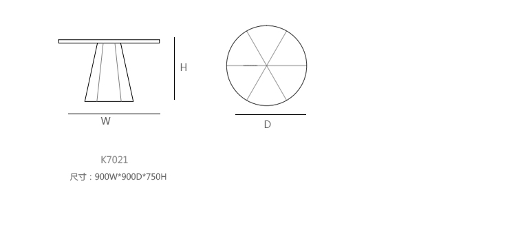 中心针茶几,圆形桌面和圆锥形六角棱柱底座。 桌面有六个部分,钻石单板匹配,产生径向效果。