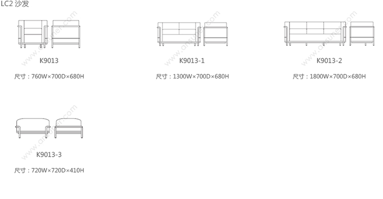 LC2 沙发 系列尺寸/示意图