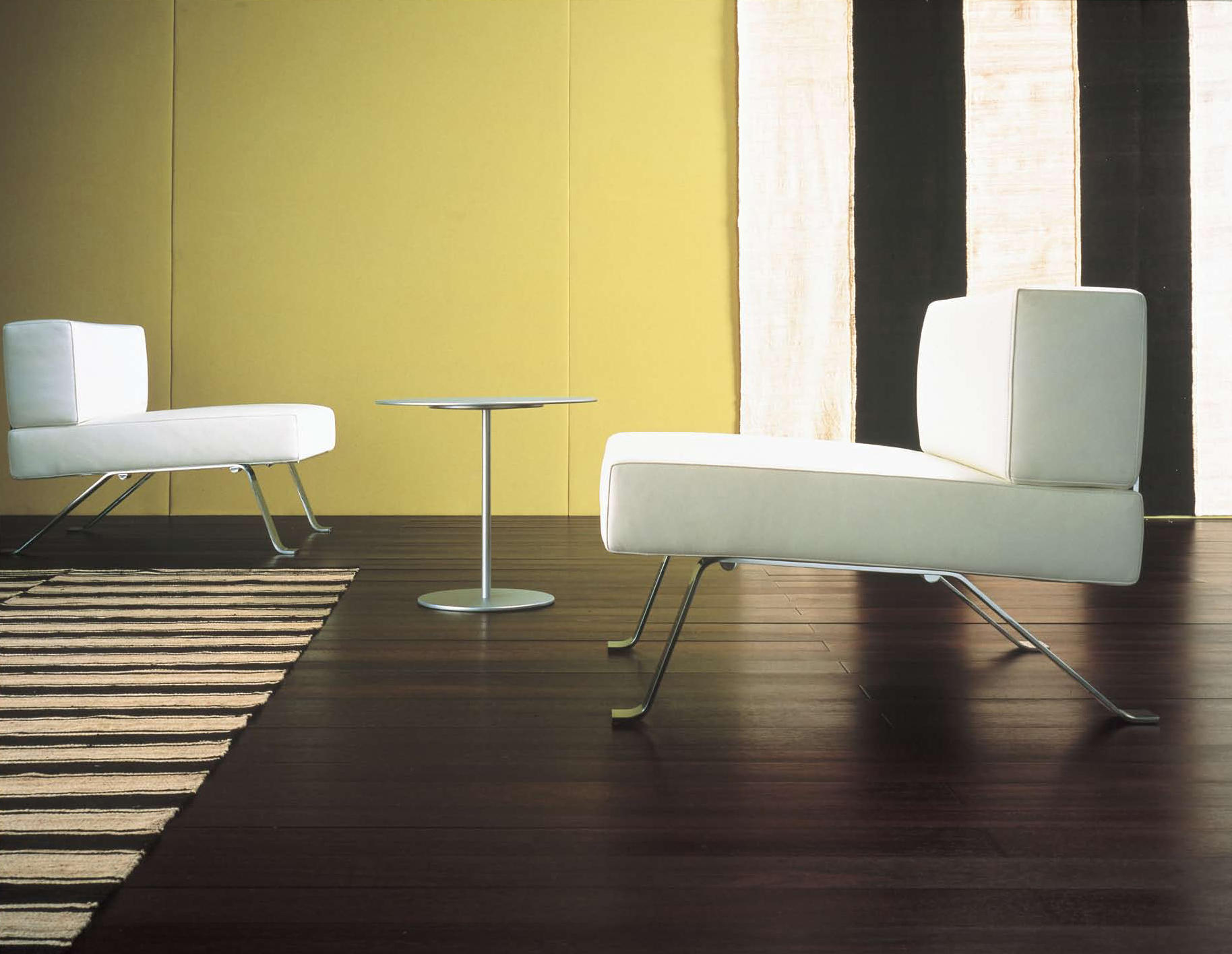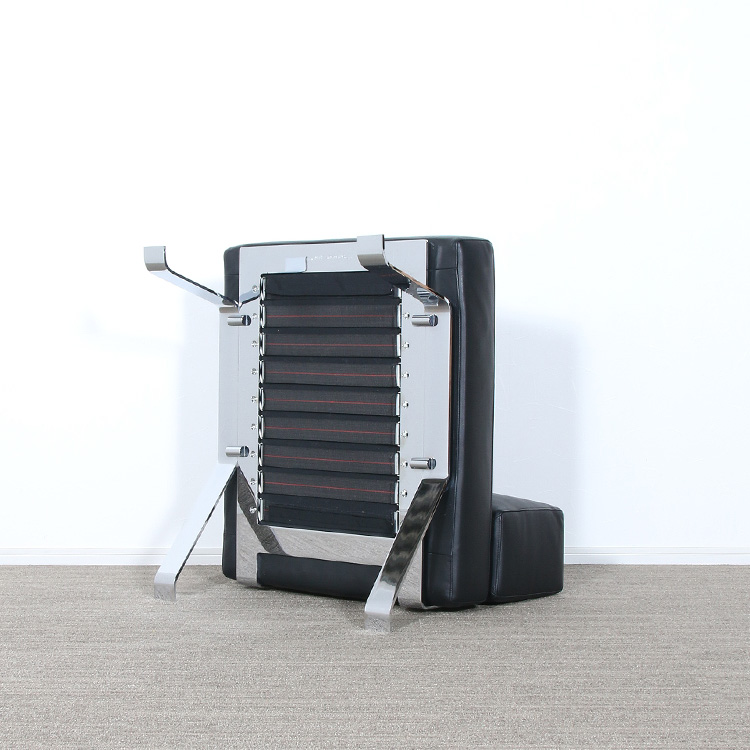 采用抛光镀铬或浮雕外饰黑色钢架的座椅。座垫松软,采用可拆换垫套,填充聚氨酯纤维和喷胶棉。