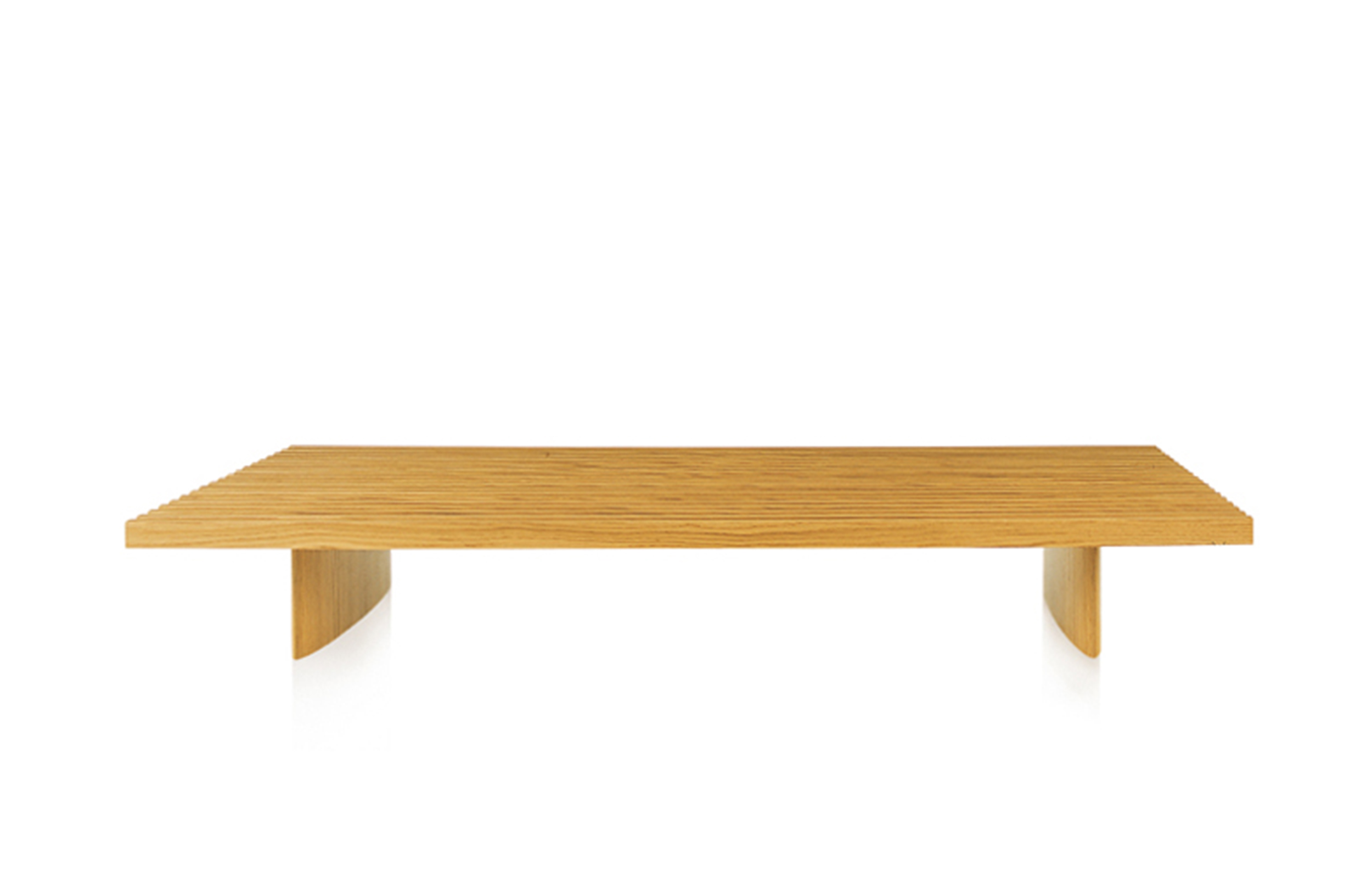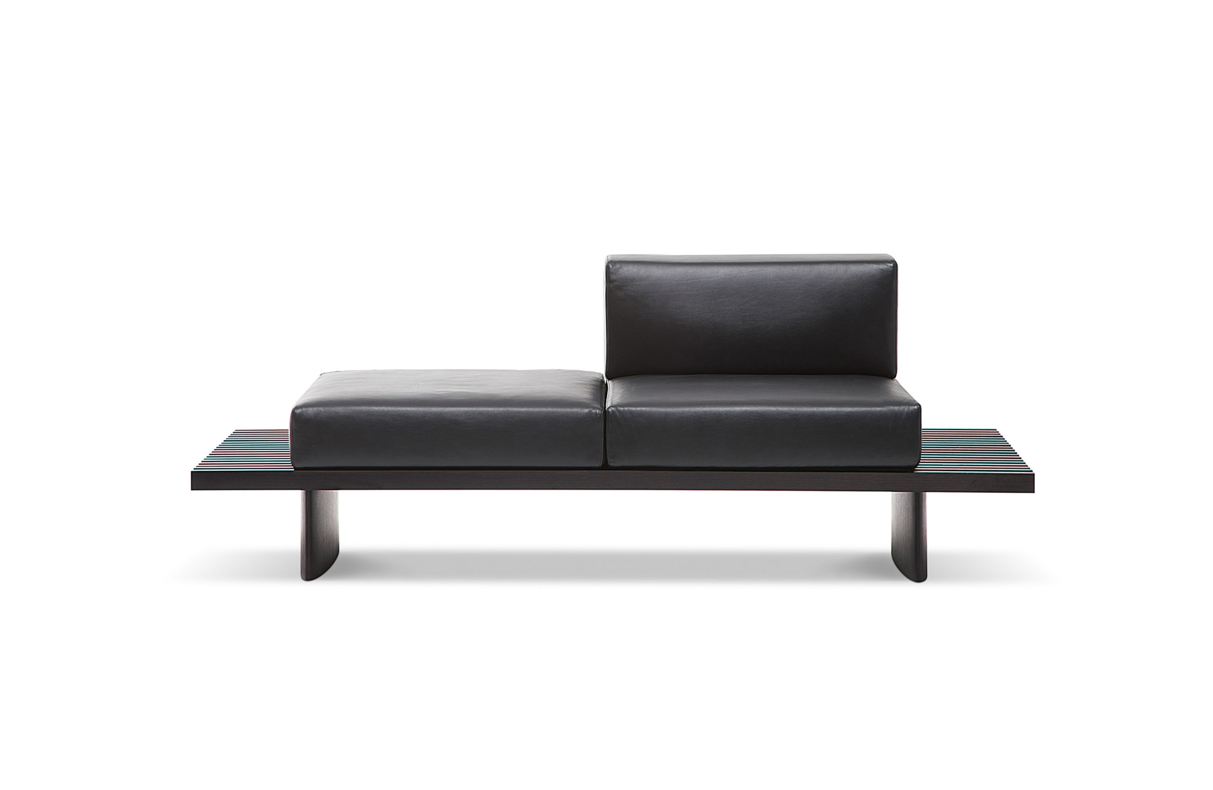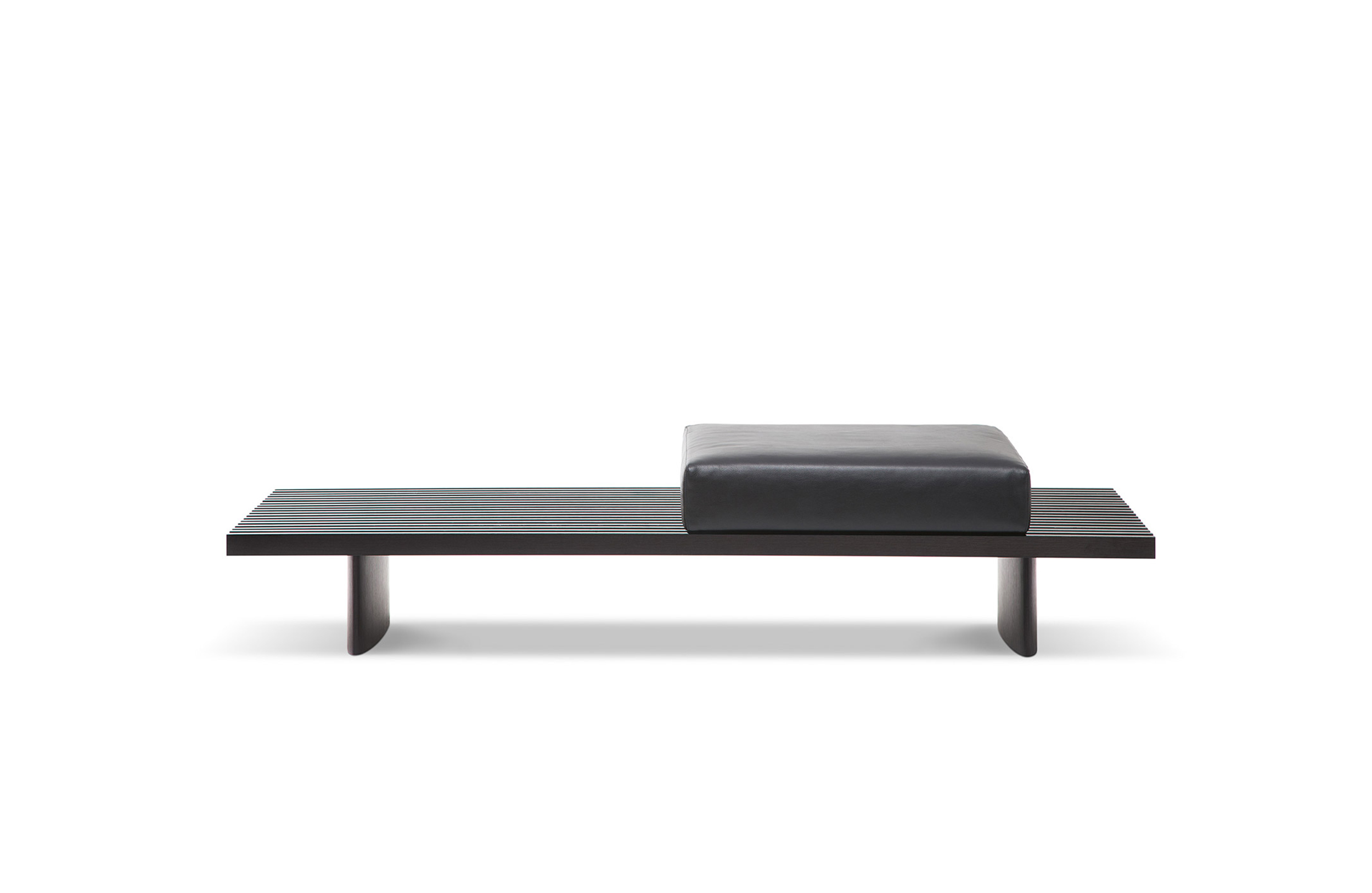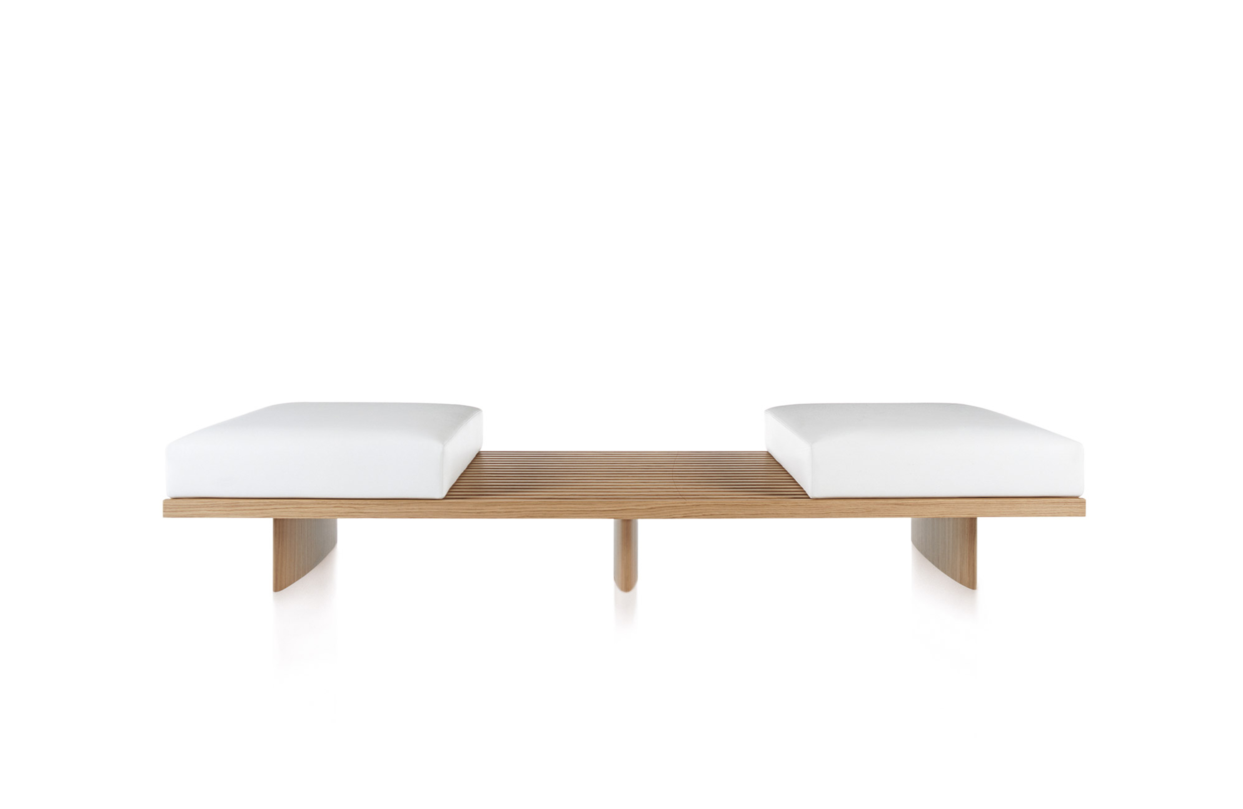 用作矮桌、长凳或和只需配备靠垫就能成为软榻的模块化系列。框架采用天然木色或黑色橡木。表面由19根板条组成;采用两条或三条支腿。软垫采用聚氨酯纤维和喷胶棉填充,用于扶手、座面,配对软垫: 一个座垫和一个靠垫。使用简单的固定装置就可将软垫固定于框架上。软垫可自由定位于表面的任何部分;因此,可使表面按照所需的尺寸用作座椅底座或顶面。