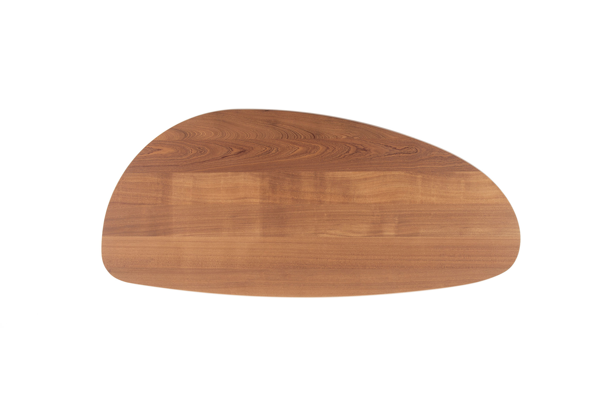 圆面实木面桌。构成桌面的木头拥有明显的侧接点。三条支撑桌腿,一条呈椭圆形的桌腿较大,链条圆柱形的桌腿较小。开孔黑漆橡木或桃花心木饰面。该系列的第一款桌子是于1938年为自己在Montparnasse的工作室设计的,圆形不对称的形状正好适于有限的空间,还突出制作桌子所用木头的天然美丽。因为这款桌子没有棱角,所以可以坐下许多人,是欢乐聚会的好选择。该款桌子采用经受外部因素变化的天然材料,例如:日照、温度、湿度和日常使用。在这款桌子中,不将此类变化视为不利因素,而将其视为材料的独特性,强调天然美丽。