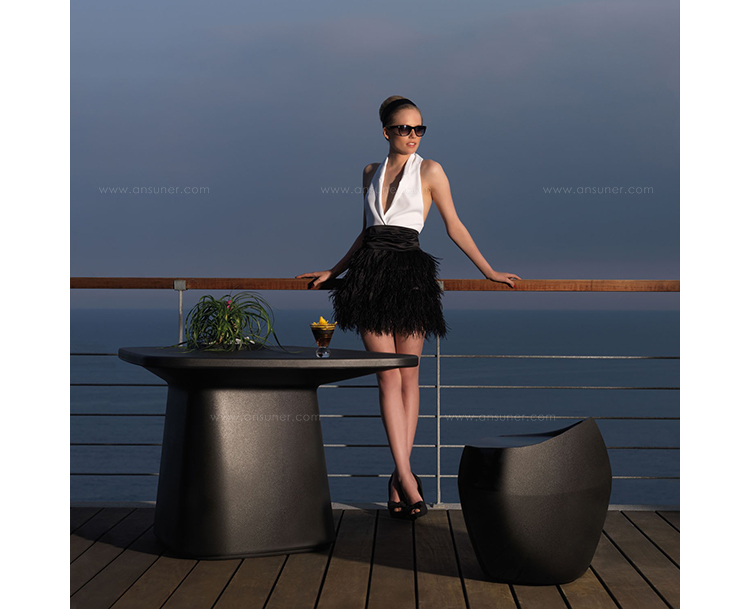 MOMA系列, 是西班牙著名设计大师Javier Mariscal 为VONDOM 设计的一系列户外产品。在决定创造一个新的家具概念-将花盆和户外桌子功能二合一的家具,MOMA就此诞生了,一个以多功能和独创性为特点的系列。然后在疑问:“我们怎么坐?”后,产生了可以适合不同气氛环境的三个版本,一个是休闲的,LOW,配套了同一系列的很舒适的矮座,另外一个是可以坐在一个椅子或者凳子来配置使用的,Medium ,左后的版本就是可以站起来或者坐在一个高凳来配置使用,HIGT。在设计的时候,灵感来自于自由空气下欣赏一杯清爽的饮料。最初的形状是器官的。在随着项目的发展,朝着更建筑学的形状,现在的形状就像一个柱顶或者隅撑,在表面支撑的部位,有一个洞,他的作用是花盆,一个带有VONDOM的自动淋水系统的花盆。其丰富鲜艳的色彩,令这个系列更新鲜,更个性。