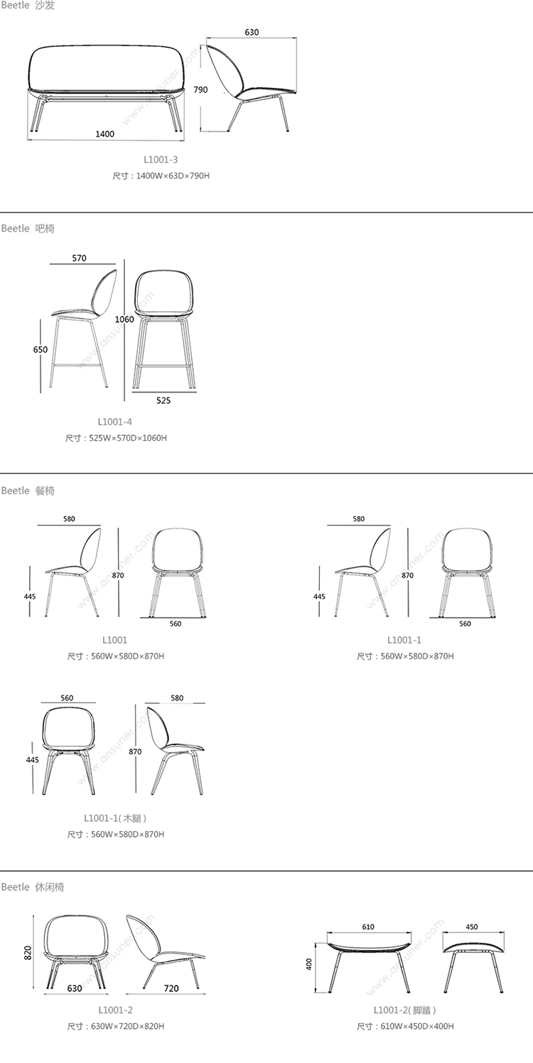 Beetle 沙发 系列尺寸/示意图