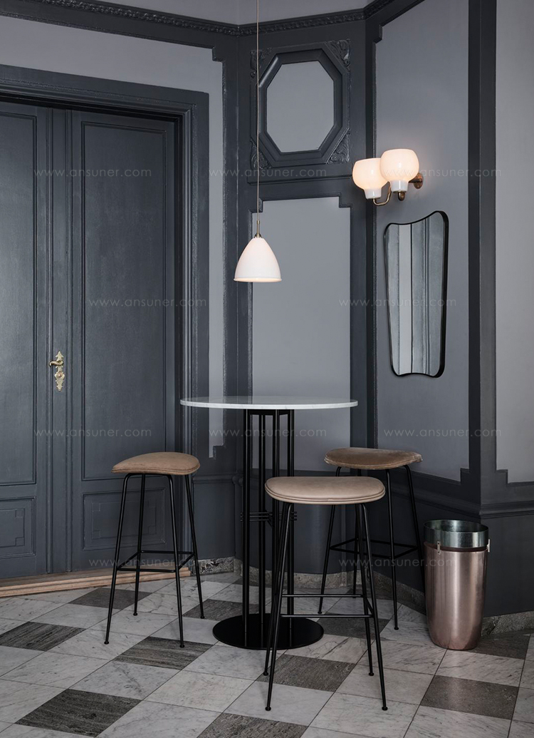 TS圆柱桌三个高度,其特征是细长的金属腿和交叉细节,统一到中心柱,专为巴黎Maison du Danemark的Flora Danica餐厅设计的装饰桌。 作为这个宏伟的空间,桌子代表了斯堪的纳维亚极简主义与全球优雅。 TS Column Table为私密用餐,社交和氛围氛围设定了框架,重点放在真实的材料选择和精心制作的工艺上。