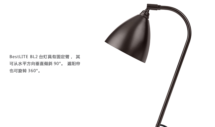 BestLITE BL2台灯具有固定臂,其可从水平方向垂直倾斜90°。遮阳帘也可旋转360°。