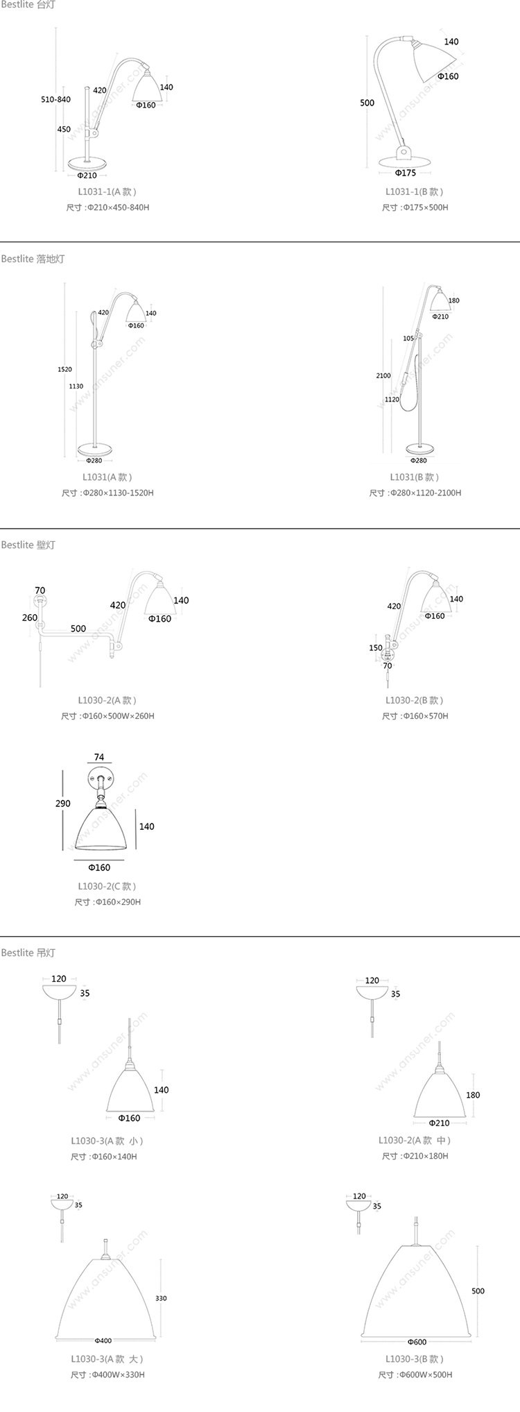 Bestlite 台灯 系列尺寸/示意图