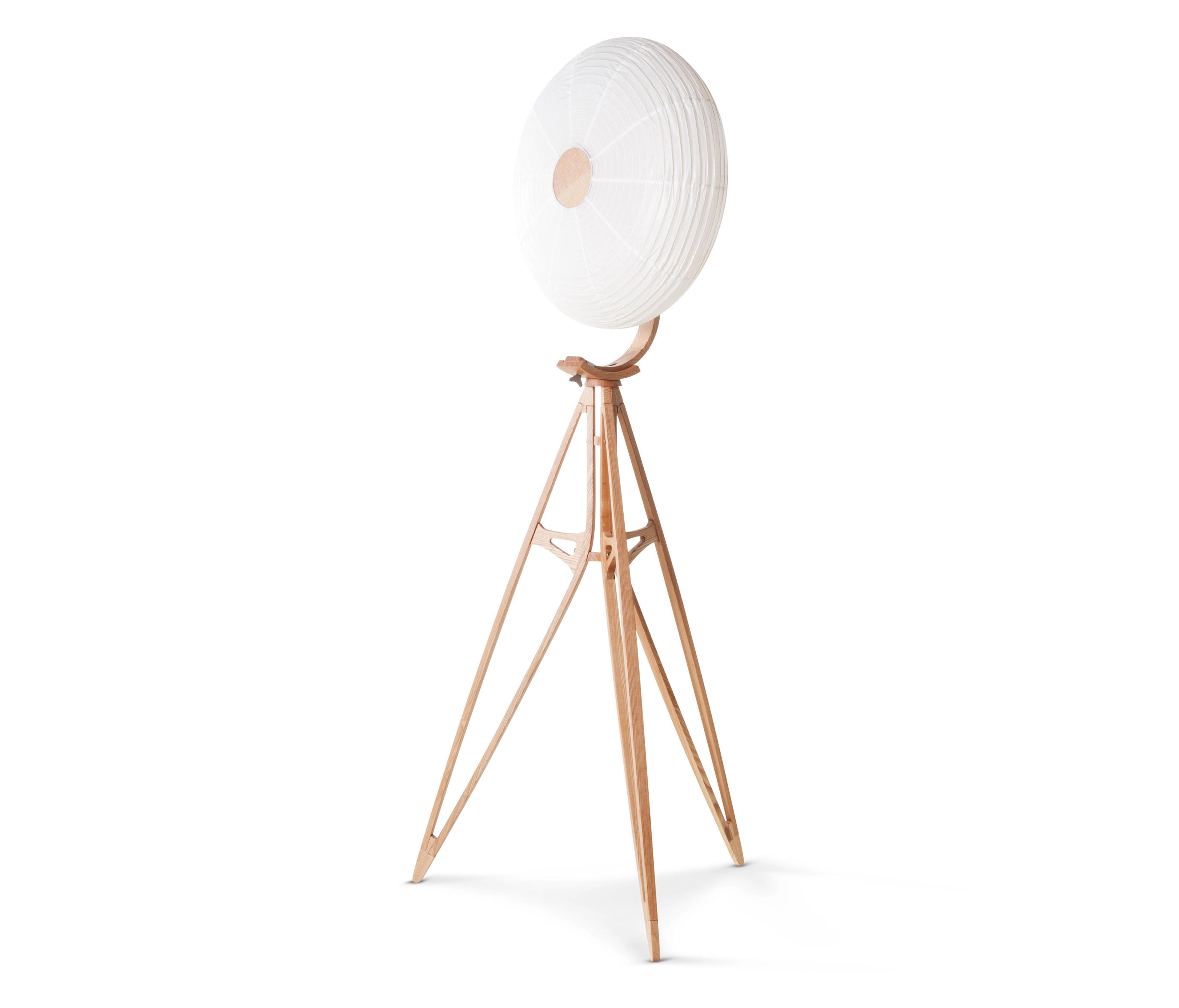 Kyoto系列是取材自核桃木或白蜡木制作的落地灯系列,以致敬京都悠久的木匠工艺和日本航空早期发展史。这款落地灯的结构设计灵感源自日本玩具飞机的精妙构造,设计师遴选出其中最为特别的一款作为设计参考,它是曾参与过1911年日本航模比赛的吉田飞机,它是一款装有双逆向推进器的A字型飞机,当时因成功飞越东京隅田川而闻名。