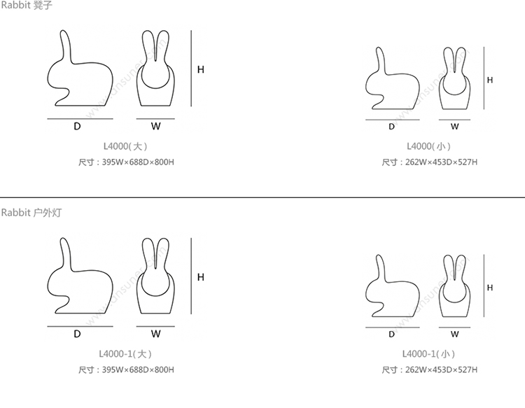 Rabbit 凳子 系列尺寸/示意图