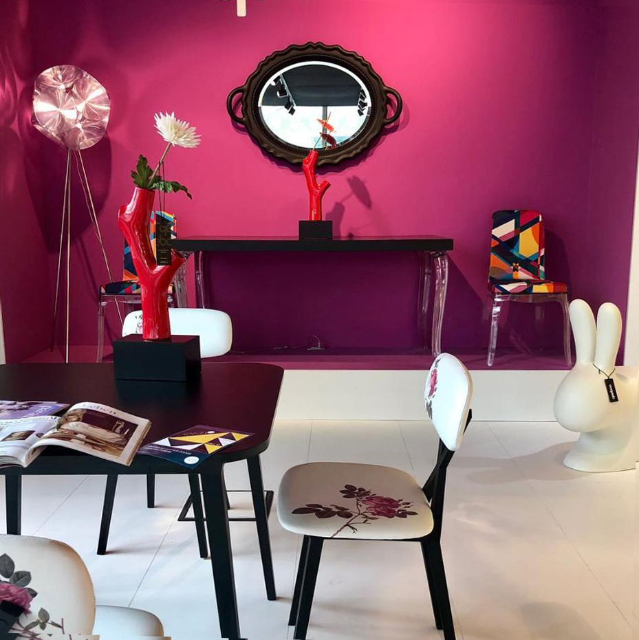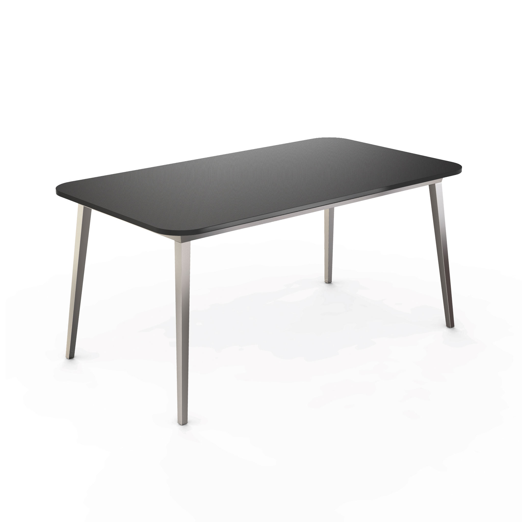 如果图形通常需要绝对黑色,设计师的目标是强调X在椅背的含义,其中没有其他线条干扰,但同时使其更具动感,座椅和背部装有软垫,面料色泽鲜艳,易于更换。 桌子是可伸展的,表面可以是木质的,也可以是单一材料的黑色塑料。