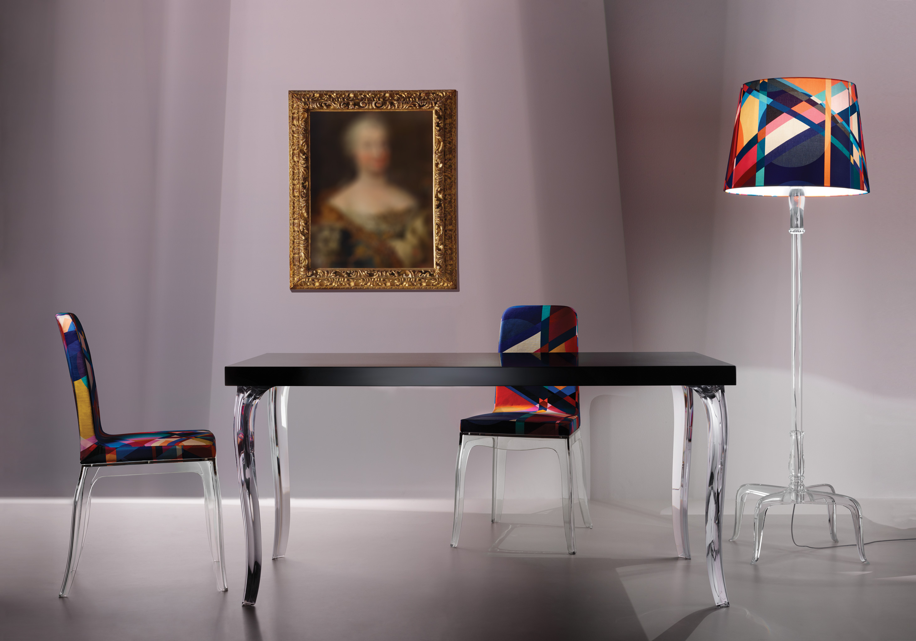 结合设计师Marcel Wanders和Stefano Giovannoni的才能,新系列产生于他们看似不可避免的合作。两者都喜欢用自己在商业和艺术上都珍视的标志性作品来建立自己。 B.B.系列包括一张餐桌和配套的餐椅,让人联想到Wanders的New Antiques系列。提花织物装饰在餐椅上,可选择黑色,白色和彩色图案。座椅放置在透明或黑色透明塑料底座上,注塑成型用于弯曲外观。这种款式的腿也体现在餐桌上,中密度纤维板的顶部,并有各种其他尺寸。这套装置可灵活调整,以适应许多室内设计。经典原型的重量与薄而透明的塑料的轻盈形成鲜明对比。设计最精美,表达了设计师的愿望,即培养他们创造的物体和环境以及将生活在其中的人之间的关系。
