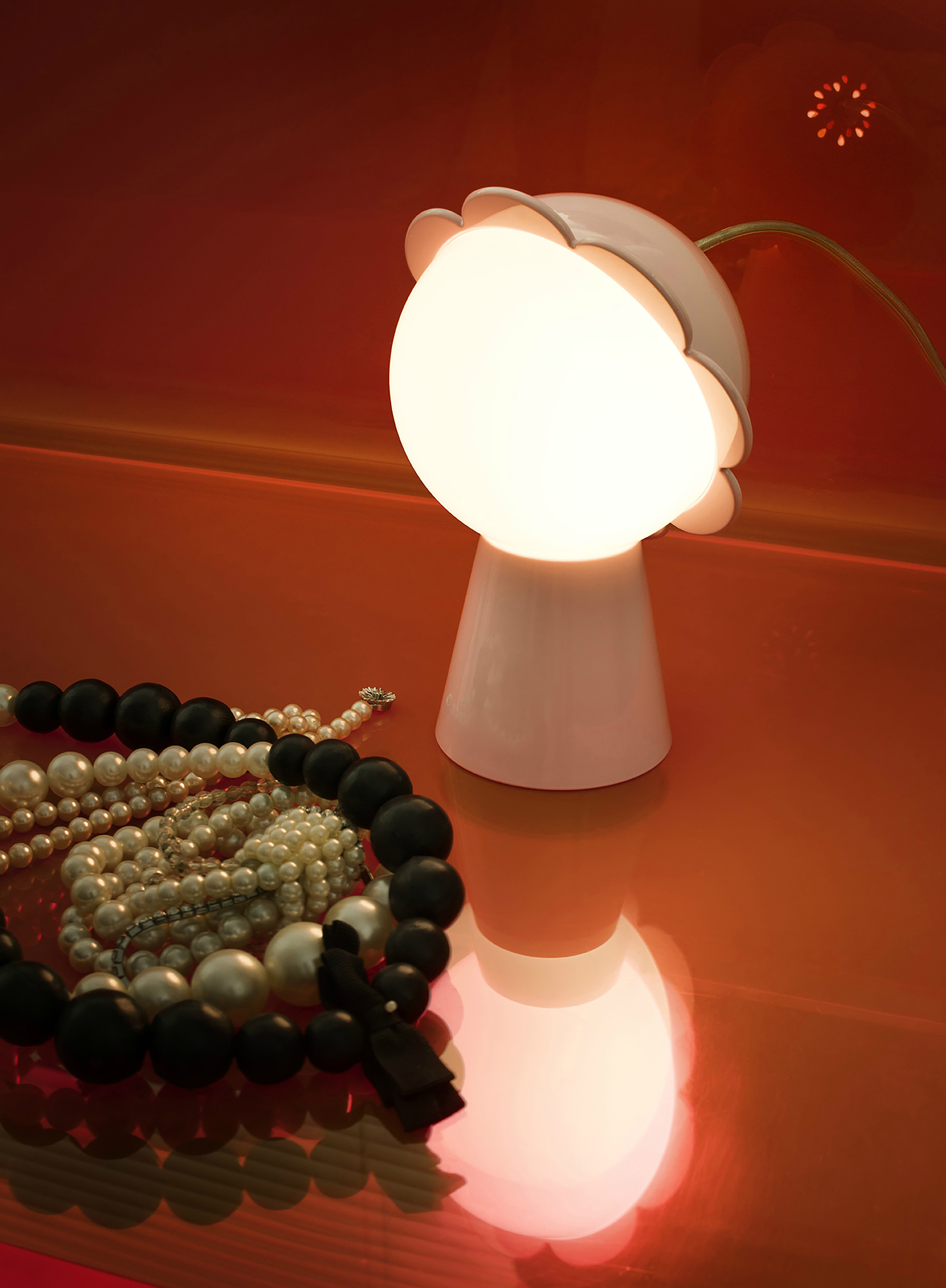 小小的、精致的、女性化的花冠,围绕着灯光,似乎在提醒着每个人迟早都会做一次“她爱我/她不爱我”的游戏。但除了游戏之外,技术上的解决办法是:用手简单地移动一下,拿着它的花瓣,就可以控制光线。这种灯有六种颜色可供选择。
