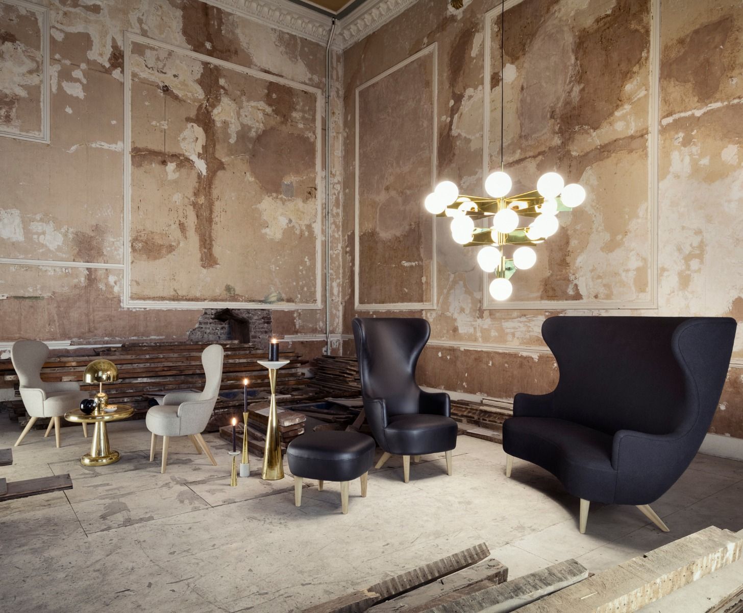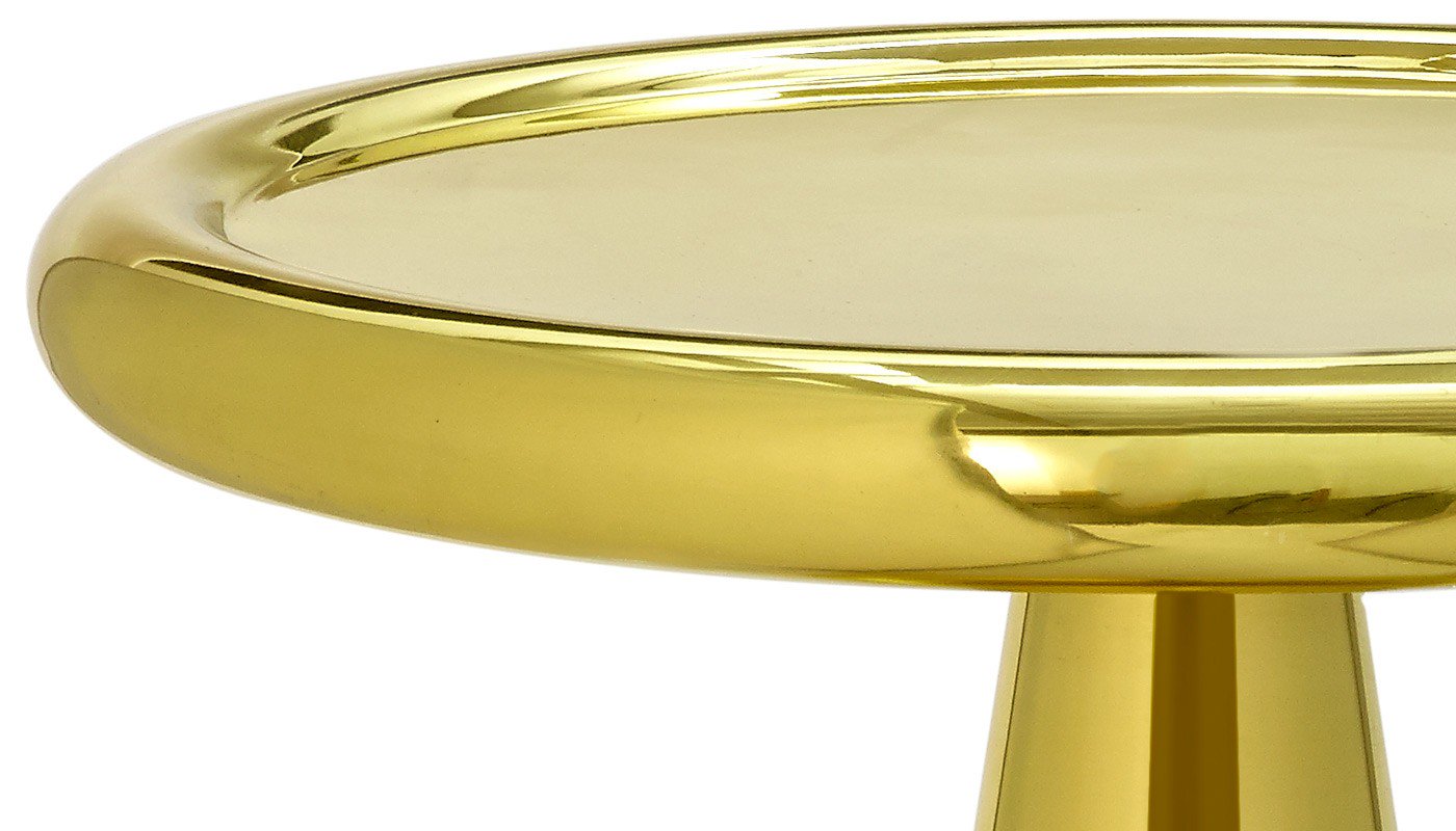由Tom Dixon Space age, Art Deco or Pop设计的2013 Spun-sheet solid brass bronze——这三件极具表现力、偶尔会出现的家具,每个人都看到了不同的影响。她说:“这是一件非常漂亮的作品。它的比例非常大,用手工抛光的纯黄铜薄板做成的曲线状,使鸡尾酒吧、餐厅或客厅立刻焕发出迪斯科的魅力。”