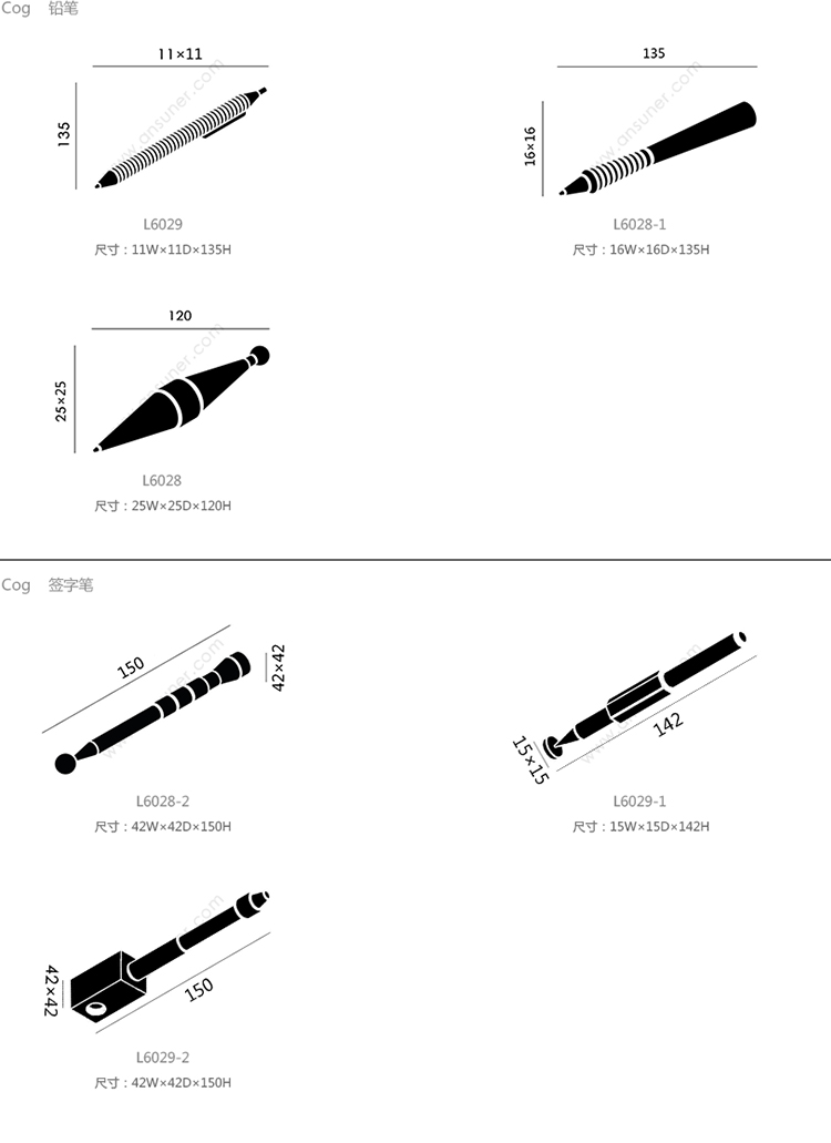 Cog 铅笔 系列尺寸/示意图