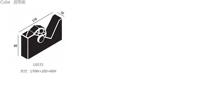 立方体胶带座是由锌合金制成,镀铜和漆完成。侧面的细微凹痕会使你牢牢握住。与我们的立方体订书机,书桌整洁和钢笔,可作为一套,并以礼盒包装。