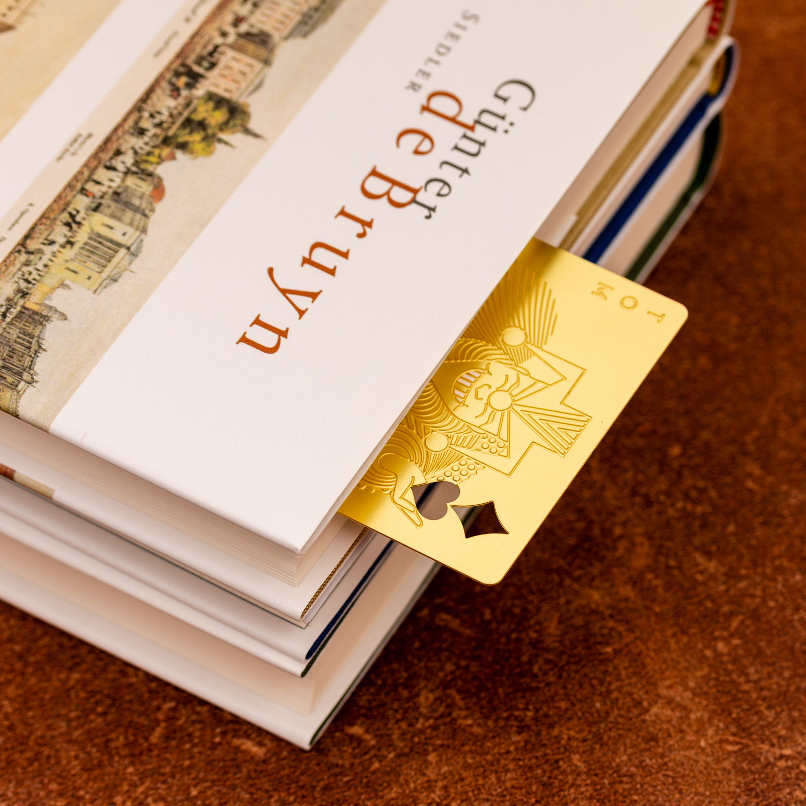 时而冷酷,时而兴高采烈(也许取决于阅读材料),小丑在书页之间滑动以保持你的位置。这个书签是由黄铜制成的,并用扑克牌图案进行数字刻蚀.该范围还包括一个羽毛笔,手指针,明信片和蒲公英。