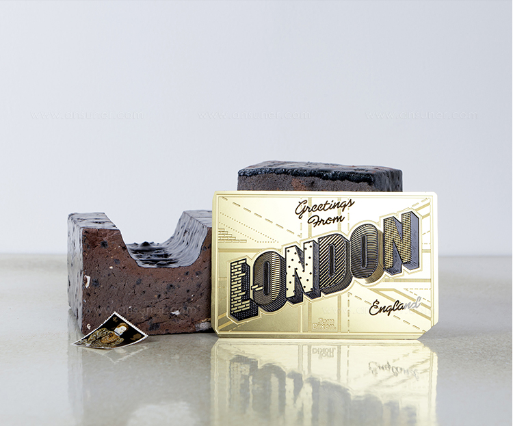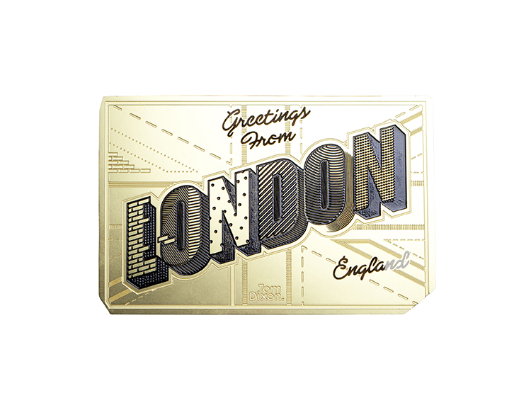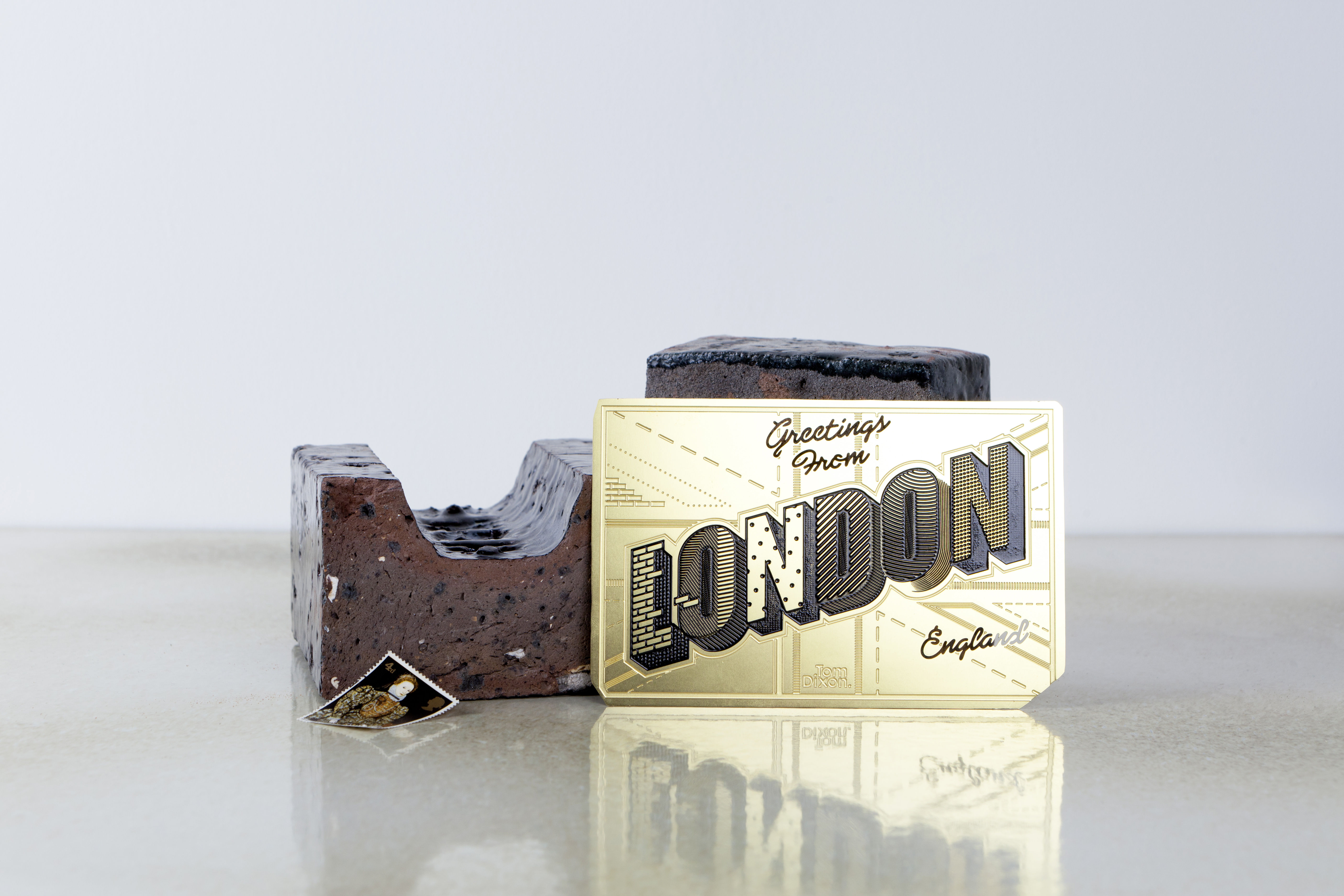 一种固体金属明信片,可以写在被爱的人身上,用作书签或珍藏。由薄板形成黄铜和精确刻蚀我们的标志,我们的工具明信片的特点是题词:“伦敦,来自英国的问候”,灵感来自于怀旧的旅游明信片,常被用作假日书中的临时书签。