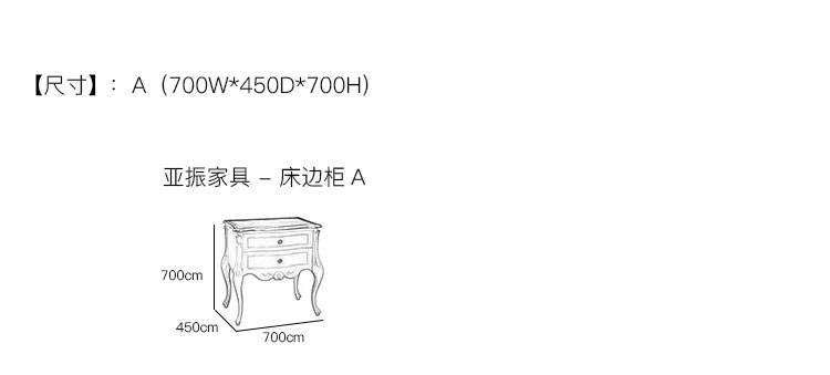 亚振家具 - 床边柜 产品尺寸/示意图