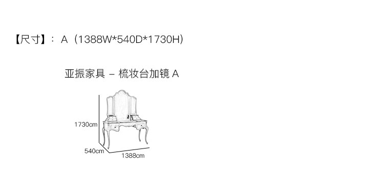 亚振家具 - 梳妆台加镜 产品尺寸/示意图