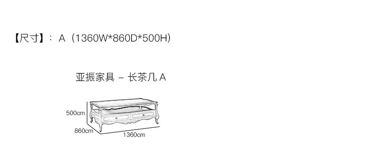 亚振家具 - 长茶几 产品尺寸/示意图