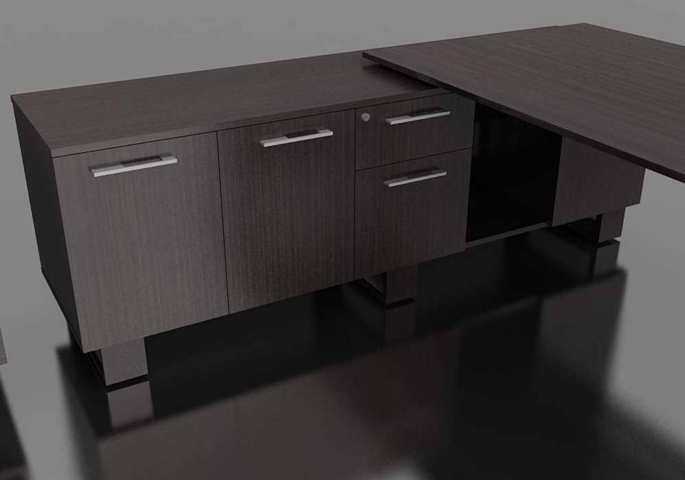 班台:20MM厚实木薄形台面板,线条直爽、简洁,矩形组合阐明了方正、规范、原则的设计理念