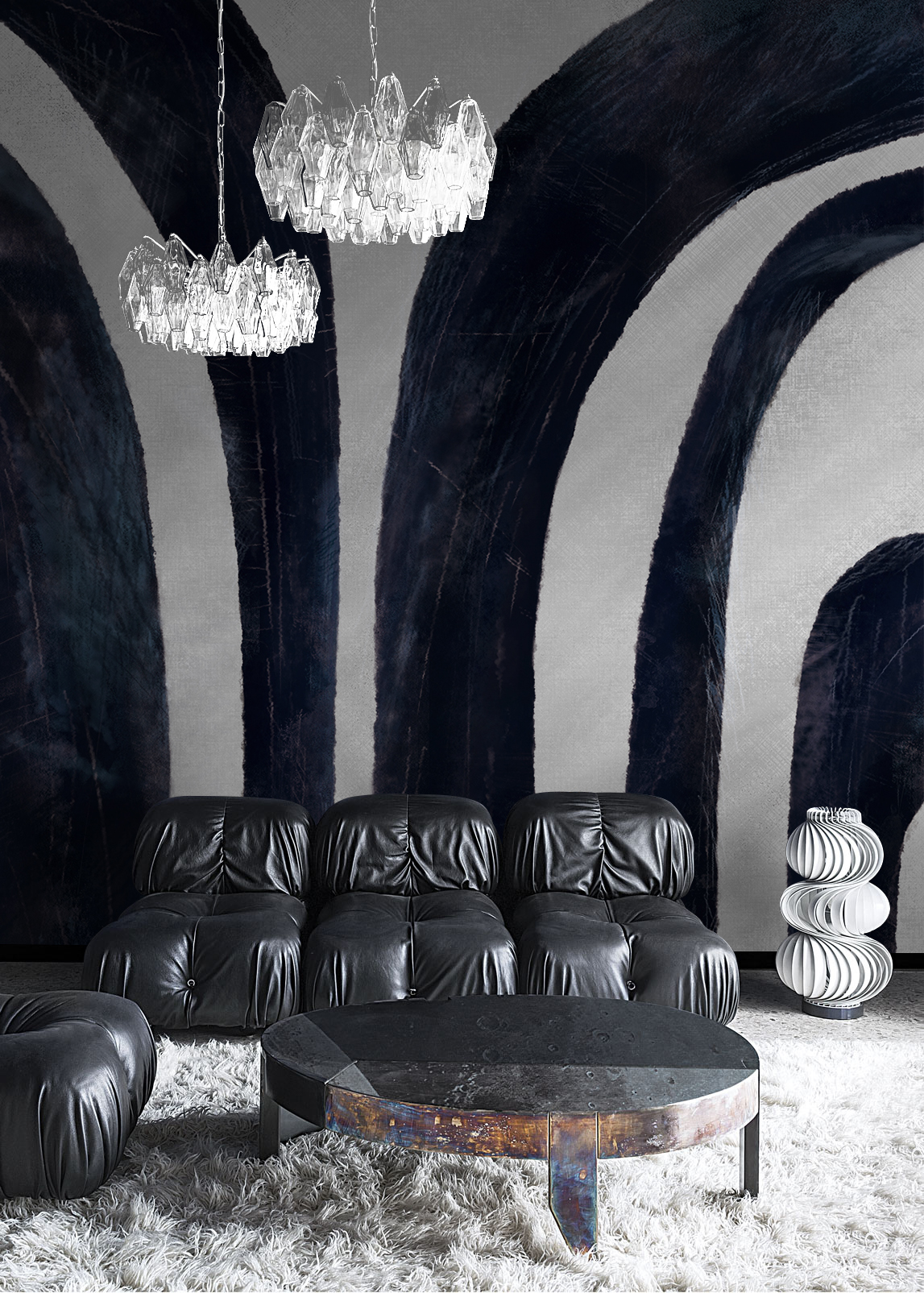 空间几何系列以点线面的构成作为创作主题,利用不同的构成方式,创造多样化的视觉效果,我们放弃了具体的内容和情节,突出运用这些纯粹的绘画语言来表现艺术形式的纯粹美;点、线、面和构成手法,就像是大厦的基石一样,看起来毫不起眼,但力量却无比强大,它是我们不断探索的源泉和情感表达的桥梁