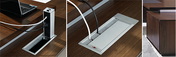※ 班台配套铝合金毛刷翻盖线槽,内部配置:网线孔,电话线孔,三插孔,音响孔,麦克孔,配置可选!