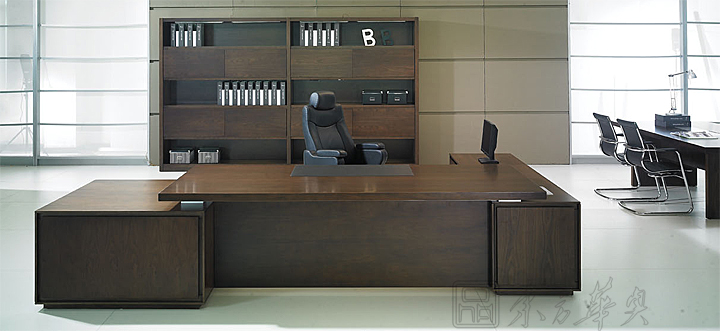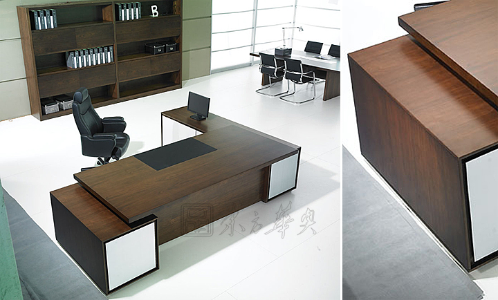 ※ 类似款大班台展示,它简洁利落的设计、款式与质素并重,正好符合今日办公室家具的高品位要求,工作桌面宽阔适用,桌前并设有落地式档板;配合隐藏式电线槽更可方便线路管理独有内斜桌边及45°角直立式聚氨酯台脚设计。