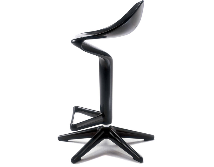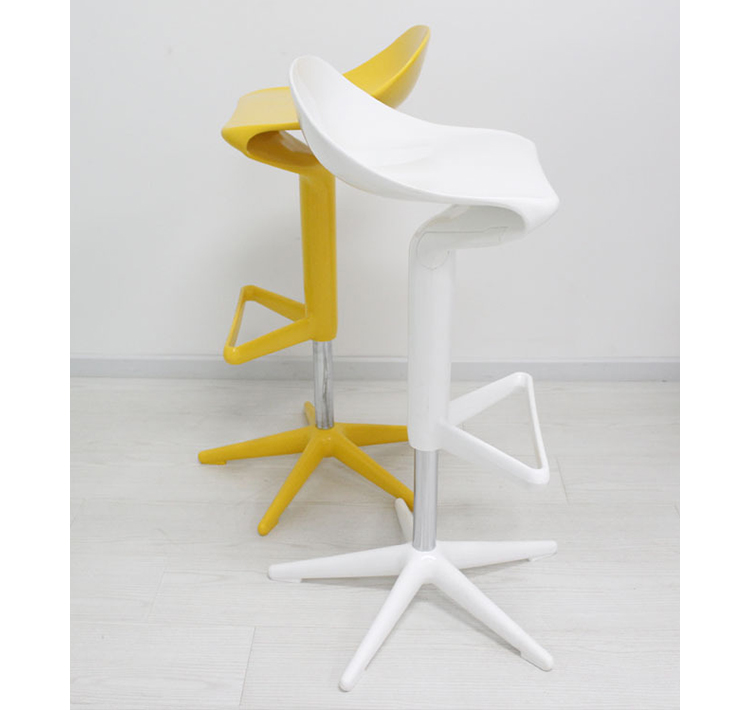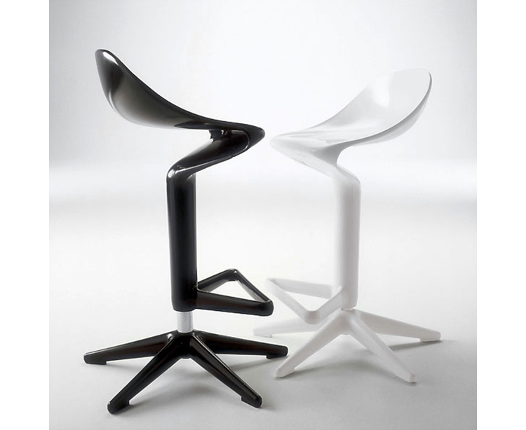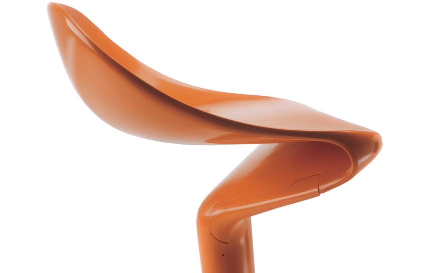 这款椅子设计灵感来自于弯曲的勺子。侧看优美的曲线设计,给空间增加动感。隐藏式的高度调节阀使整体造型更加完美。宽阔的底部支撑如吸盘牢固地吸附于地面,可防止倾覆。当您坐入其中作微微的颤动,特别的椅背给您带来不一样的体验。
